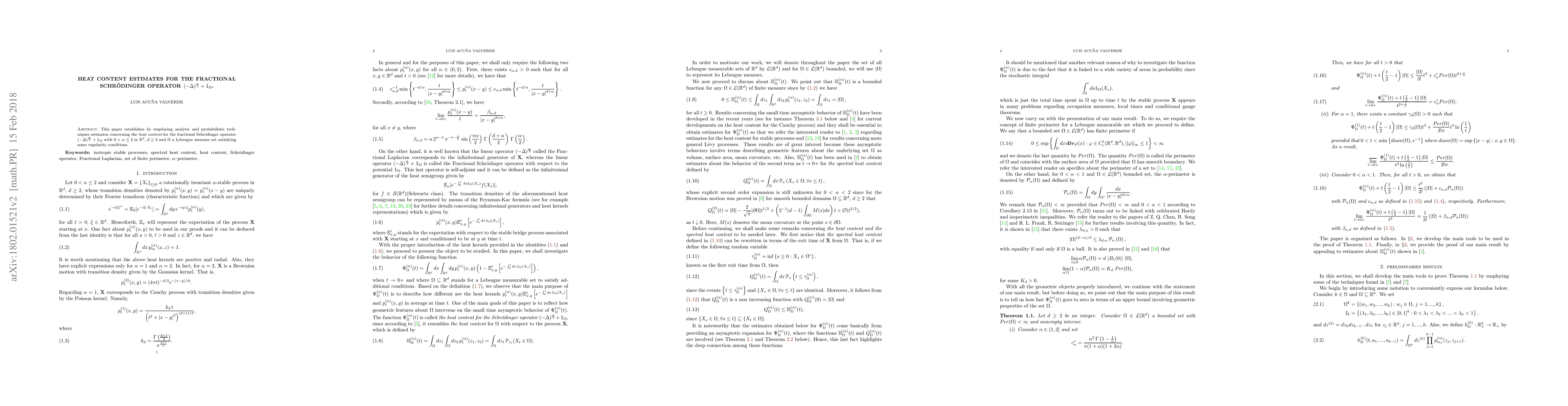 This paper establishes by employing analytic and probabilistic techniques estimates concerning the {\it heat content} for the fractional Schr\"odinger operator $\F+\ind$ with $0<\alpha\leq 2$ in $\Rd$, $d\geq 2$ and $\dom$ a Lebesgue measure set satisfying some regularity conditions.