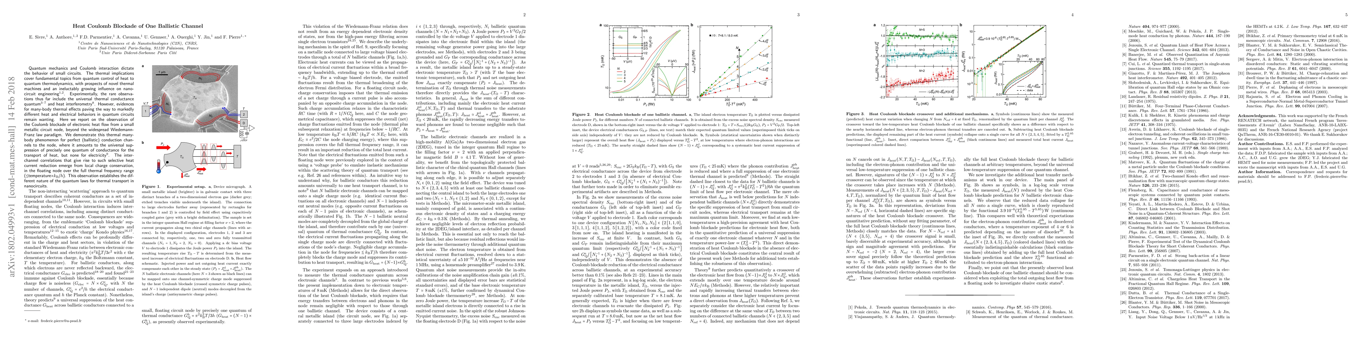 Quantum mechanics and Coulomb interaction dictate the behavior of small circuits. The thermal implications cover fundamental topics from quantum control of heat to quantum thermodynamics, with prospects of novel thermal machines and an ineluctably growing influence on nanocircuit engineering. Experimentally, the rare observations thus far include the universal thermal conductance quantum and heat interferometry. However, evidences for many-body thermal effects paving the way to markedly different heat and electrical behaviors in quantum circuits remain wanting. Here we report on the observation of the Coulomb blockade of electronic heat flow from a small metallic circuit node, beyond the widespread Wiedemann-Franz law paradigm. We demonstrate this thermal many-body phenomenon for perfect (ballistic) conduction channels to the node, where it amounts to the universal suppression of precisely one quantum of conductance for the transport of heat, but none for electricity. The inter-channel correlations that give rise to such selective heat current reduction emerge from local charge conservation, in the floating node over the full thermal frequency range ($\lesssim$temperature$\times k_\mathrm{B}/h$). This observation establishes the different nature of the quantum laws for thermal transport in nanocircuits.