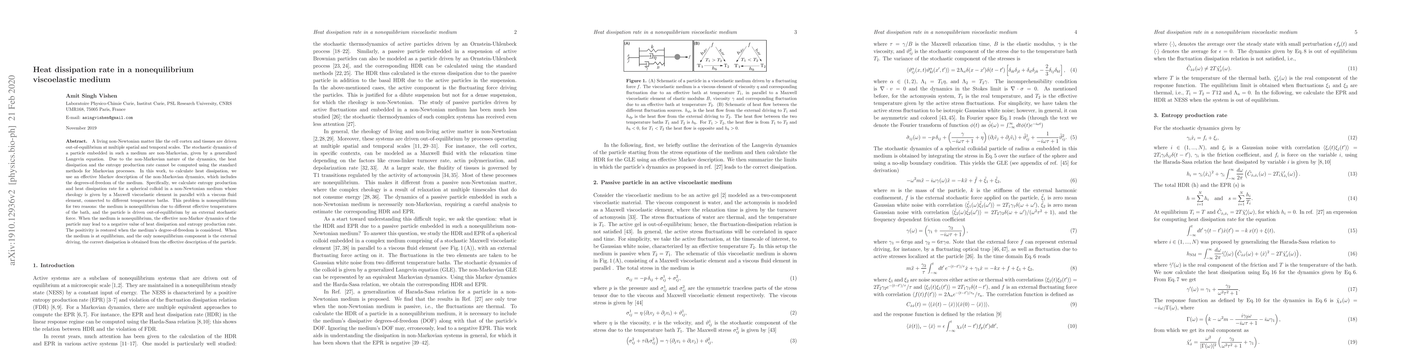A living non-Newtonian matter like the cell cortex and tissues are driven out-of-equilibrium at multiple spatial and temporal scales. The stochastic dynamics of a particle embedded in such a medium are non-Markovian, given by a generalized Langevin equation. Due to the non-Markovian nature of the dynamics, the heat dissipation and the entropy production rate cannot be computed using the standard methods for Markovian processes. In this work, to calculate heat dissipation, we use an effective Markov description of the non-Markovian dynamics, which includes the degrees-of-freedom of the medium. Specifically, we calculate entropy production and heat dissipation rate for a spherical colloid in a non-Newtonian medium whose rheology is given by a Maxwell viscoelastic element in parallel with a viscous fluid element, connected to different temperature baths. This problem is nonequilibrium for two reasons: the medium is nonequilibrium due to different effective temperatures of the bath, and the particle is driven out-of-equilibrium by an external stochastic force. When the medium is nonequilibrium, the effective non-Markov dynamics of the particle may lead to a negative value of heat dissipation and entropy production rate. The positivity is restored when the medium's degree-of-freedom is considered. When the medium is at equilibrium, and the only nonequilibrium component is the external driving, the correct dissipation is obtained from the effective description of the particle.