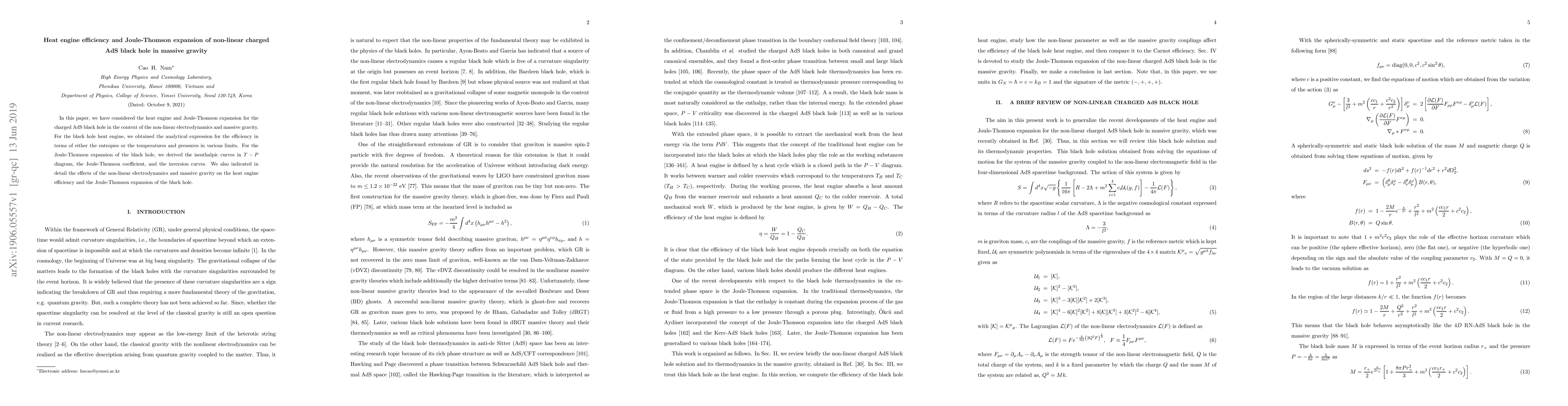 This paper investigates the efficiency of a heat engine and the Joule-Thomson expansion for a charged AdS black hole influenced by non-linear electrodynamics and massive gravity, deriving analytical expressions for efficiency and isenthalpic curves, and detailing the effects of these factors on thermodynamic properties.