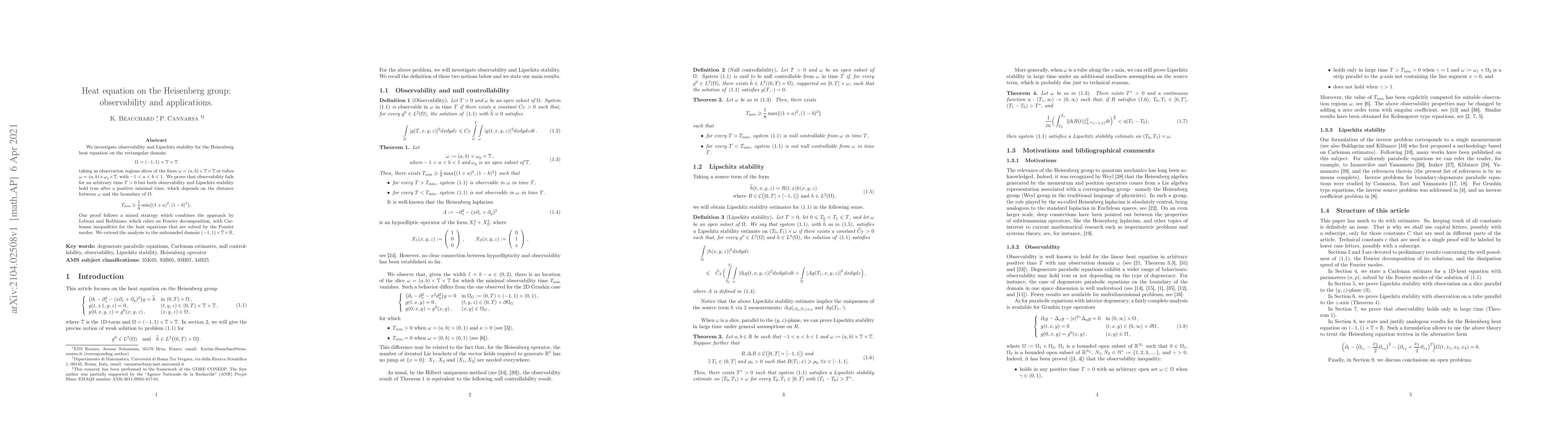 The paper establishes observability inequalities and Lipschitz stability estimates for the Heisenberg heat equation on product-shaped domains in R^3, taking observations on appropriate slices or tubes.