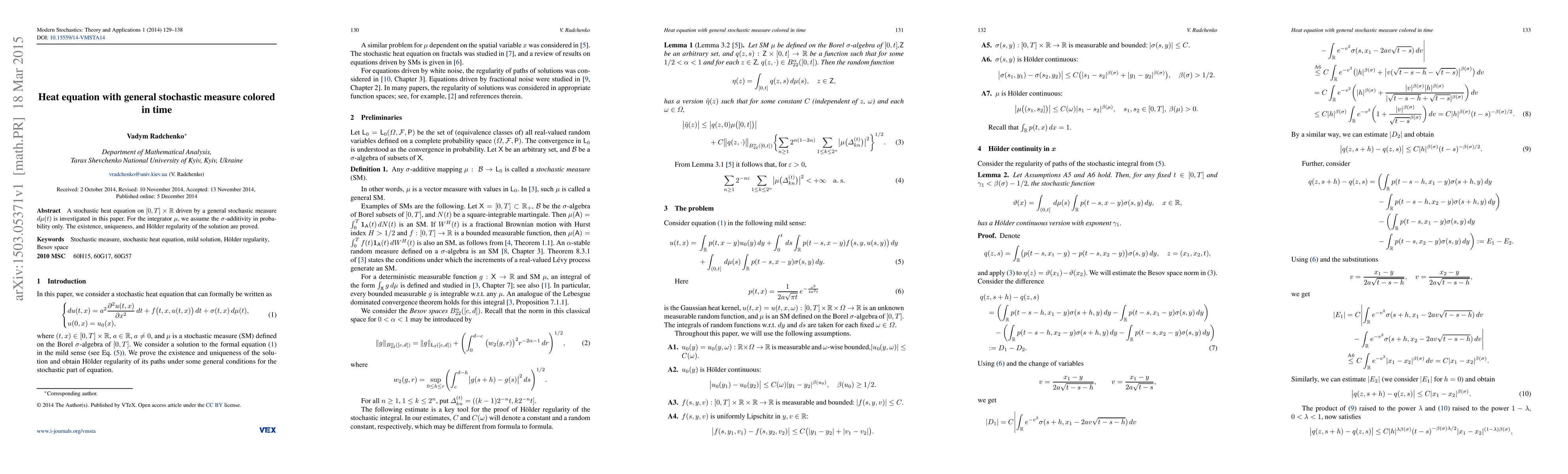 This paper investigates a stochastic heat equation driven by a general stochastic measure $d\mu(t)$ with $\sigma$-additivity in probability. It proves the existence, uniqueness, and Hölder regularity of the solution.