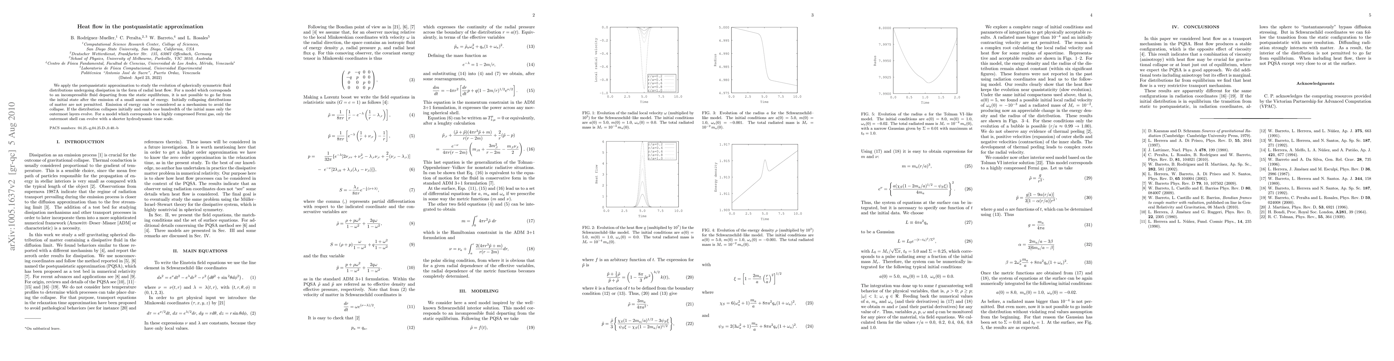 We apply the postquasistatic approximation to study the evolution of spherically symmetric fluid distributions undergoing dissipation in the form of radial heat flow. For a model which corresponds to an incompressible fluid departing from the static equilibrium, it is not possible to go far from the initial state after the emission of a small amount of energy. Initially collapsing distributions of matter are not permitted. Emission of energy can be considered as a mechanism to avoid the collapse. If the distribution collapses initially and emits one hundredth of the initial mass only the outermost layers evolve. For a model which corresponds to a highly compressed Fermi gas, only the outermost shell can evolve with a shorter hydrodynamic time scale.