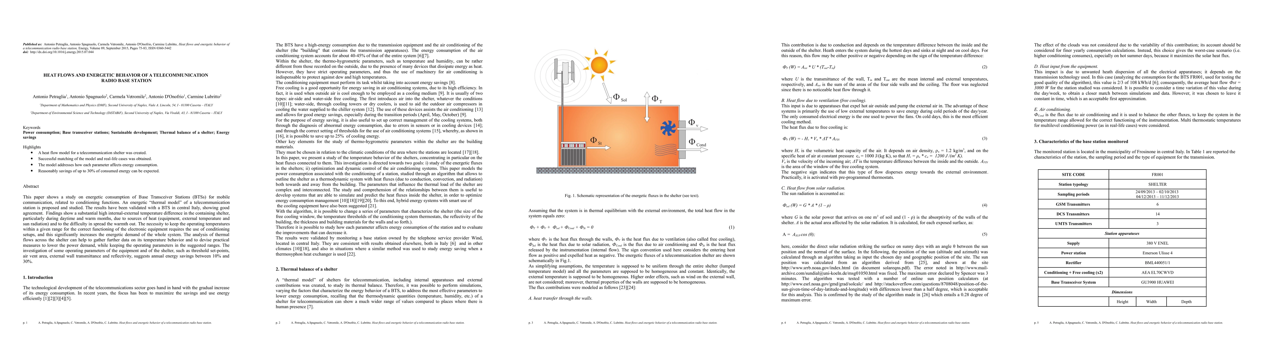 This study investigates the energetic consumption of telecommunication radio base stations, finding a high internal-external temperature difference that necessitates conditioning setups to maintain optimal operating temperatures.