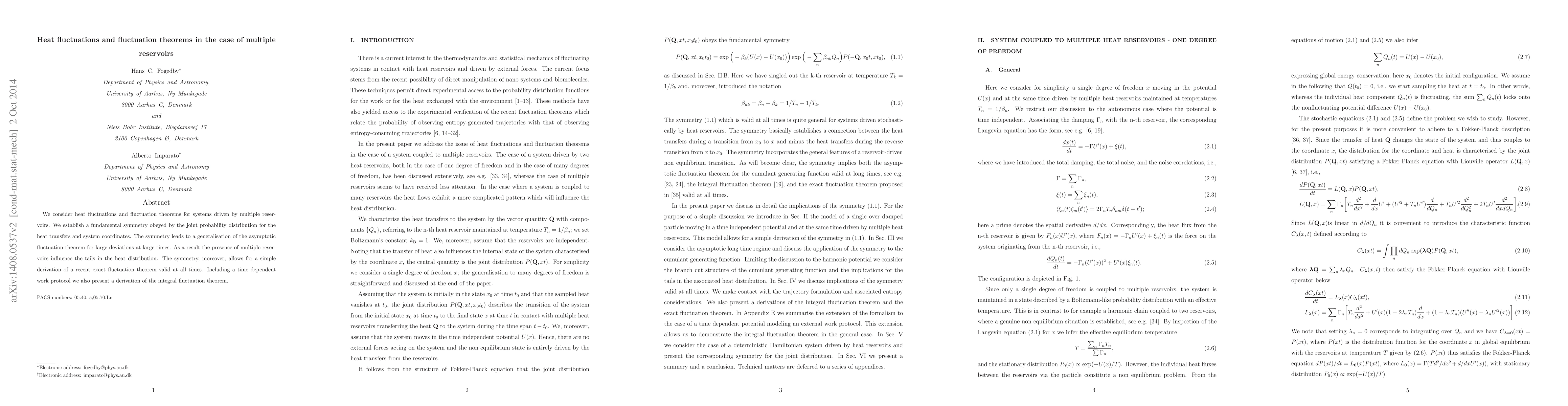 This paper explores heat fluctuations and fluctuation theorems in systems driven by multiple thermal reservoirs, establishing a fundamental symmetry in the joint probability distribution of heat transfers and system coordinates. This symmetry generalizes the asymptotic fluctuation theorem and allows for the derivation of an exact fluctuation theorem valid at all times, as well as an integral fluctuation theorem under time-dependent work protocols.