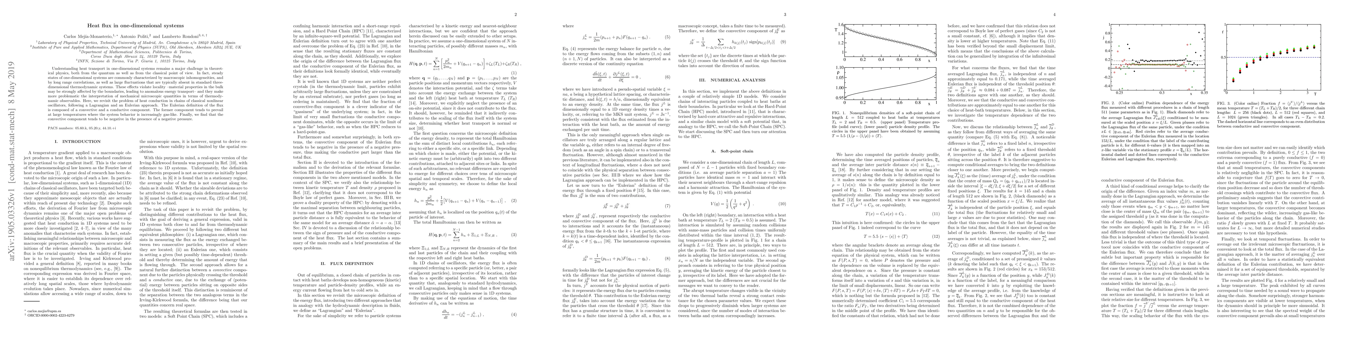Understanding heat transport in one-dimensional systems remains a major challenge in theoretical physics, both from the quantum as well as from the classical point of view. In fact, steady states of one-dimensional systems are commonly characterized by macroscopic inhomogeneities, and by long range correlations, as well as large fluctuations that are typically absent in standard three-dimensional thermodynamic systems. These effects violate locality --material properties in the bulk may be strongly affected by the boundaries, leading to anomalous energy transport-- and they make more problematic the interpretation of mechanical microscopic quantities in terms of thermodynamic observables. Here, we revisit the problem of heat conduction in chains of classical nonlinear oscillators, following a Lagrangian and an Eulerian approach. The Eulerian definition of the flux is composed of a convective and a conductive component. The former component tends to prevail at large temperatures where the system behavior is increasingly gas-like. Finally, we find that the convective component tends to be negative in the presence of a negative pressure.
