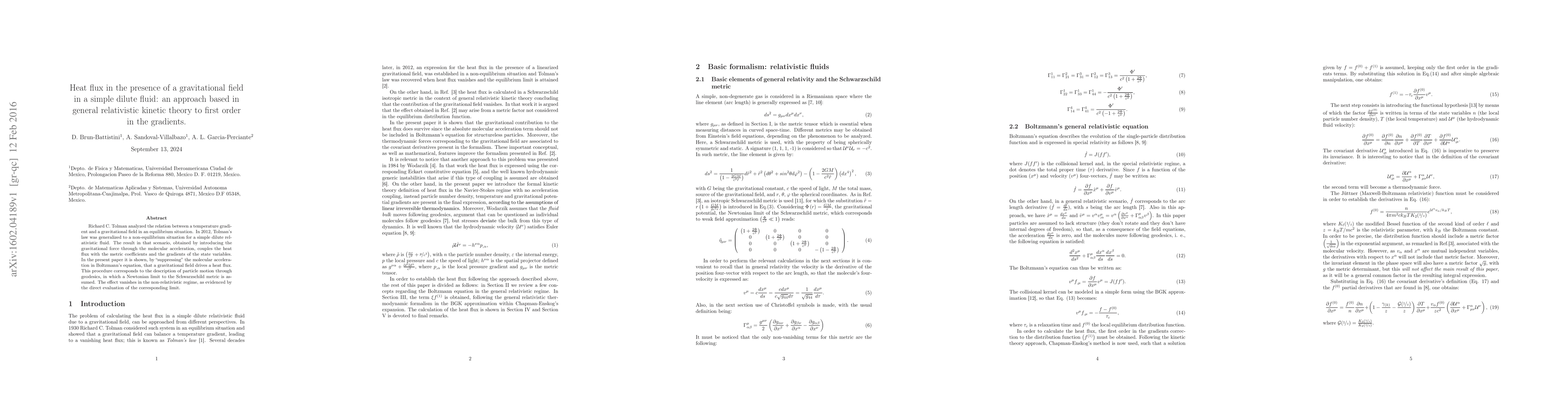 Richard C. Tolman analyzed the relation between a temperature gradient and a gravitational field in an equilibrium situation. In 2012, Tolman\textquoteright s law was generalized to a non-equilibrium situation for a simple dilute relativistic fluid. The result in that scenario, obtained by introducing the gravitational force through the molecular acceleration, couples the heat flux with the metric coefficients and the gradients of the state variables. In the present paper it is shown, by \textquotedblleft suppressing\textquotedblright{} the molecular acceleration in Boltzmann\textquoteright s equation, that a gravitational field drives a heat flux. This procedure corresponds to the description of particle motion through geodesics, in which a Newtonian limit to the Schwarzschild metric is assumed. The effect vanishes in the non-relativistic regime, as evidenced by the direct evaluation of the corresponding limit.