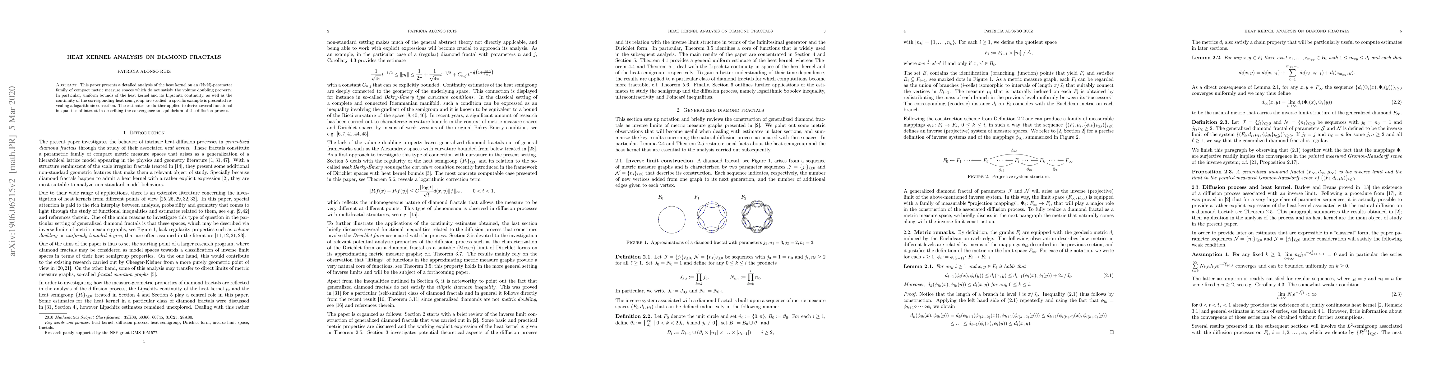 This paper analyzes the heat kernel on diamond fractals, focusing on uniform bounds and Lipschitz continuity, revealing a logarithmic correction in specific examples. The findings contribute to understanding functional inequalities and the convergence to equilibrium of diffusion processes.