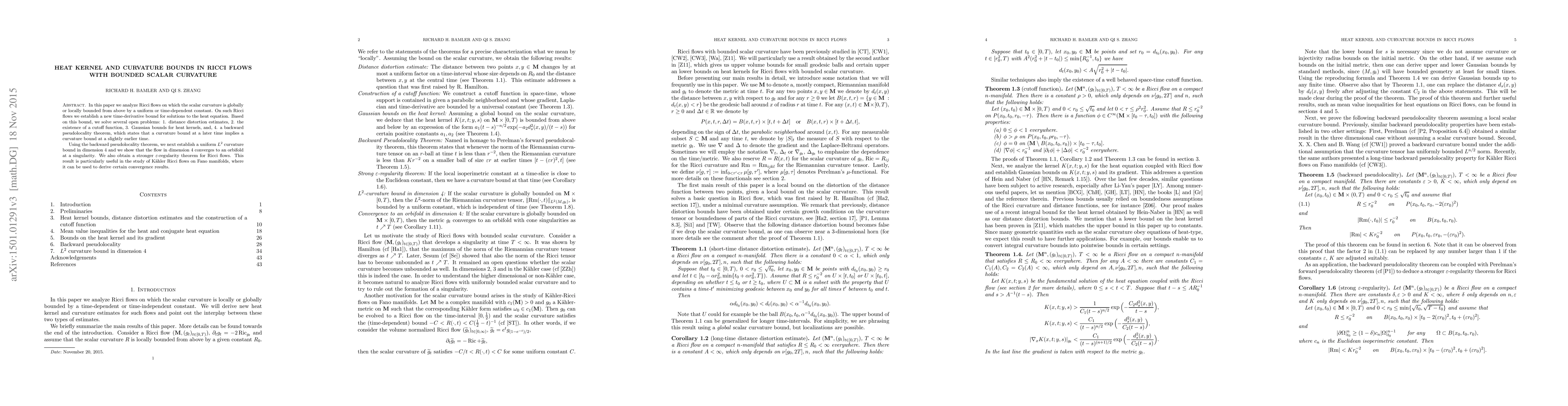 In this paper we analyze Ricci flows on which the scalar curvature is globally or locally bounded from above by a uniform or time-dependent constant. On such Ricci flows we establish a new time-derivative bound for solutions to the heat equation. Based on this bound, we solve several open problems: 1. distance distortion estimates, 2. the existence of a cutoff function, 3. Gaussian bounds for heat kernels, and, 4. a backward pseudolocality theorem, which states that a curvature bound at a later time implies a curvature bound at a slightly earlier time. Using the backward pseudolocality theorem, we next establish a uniform $L^2$ curvature bound in dimension 4 and we show that the flow in dimension 4 converges to an orbifold at a singularity. We also obtain a stronger $\varepsilon$-regularity theorem for Ricci flows. This result is particularly useful in the study of K\"ahler Ricci flows on Fano manifolds, where it can be used to derive certain convergence results.