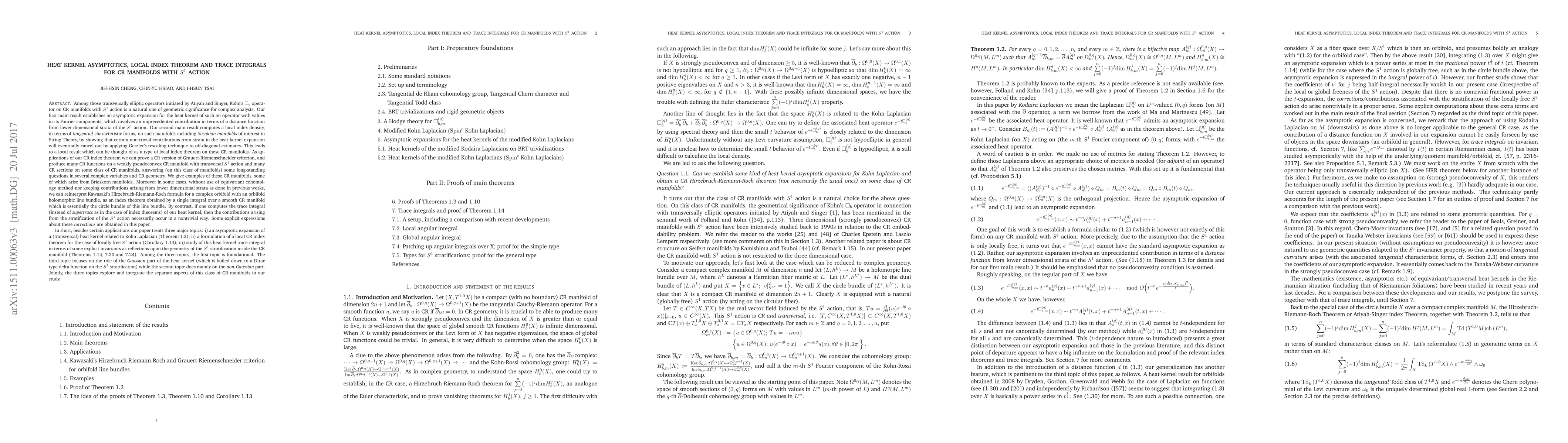 This paper establishes an asymptotic expansion for the heat kernel of Kohn's $\Box_b$ operator on CR manifolds with $S^1$ action, revealing new contributions from lower dimensional strata. It also proves a local index theorem on these manifolds, leading to applications including a CR version of Grauert-Riemenschneider criterion and the existence of many CR functions and sections on certain CR manifolds.
