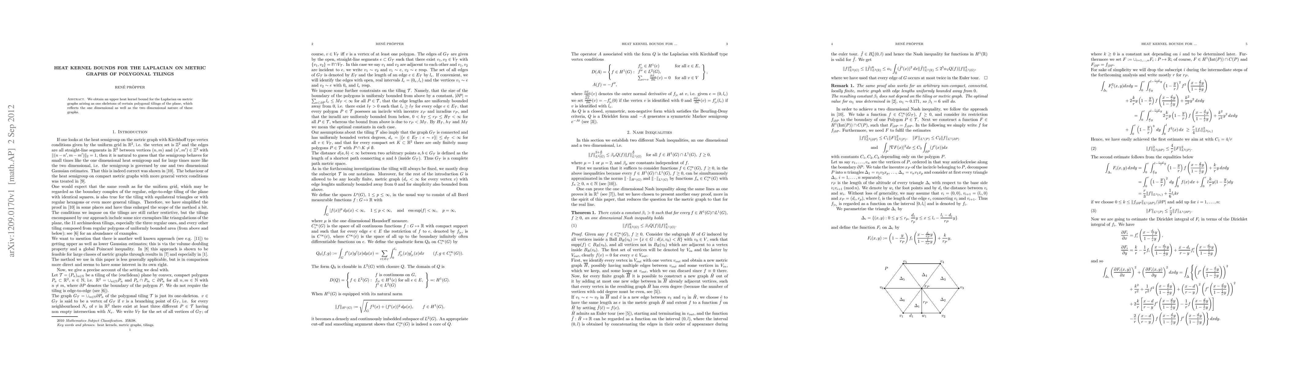 Summary: This paper provides an upper bound for the heat kernel of the Laplacian on metric graphs formed by the skeletons of polygonal tilings, capturing both the one-dimensional and two-dimensional characteristics of these graphs. The result reflects the intrinsic geometry of these unique graph structures.