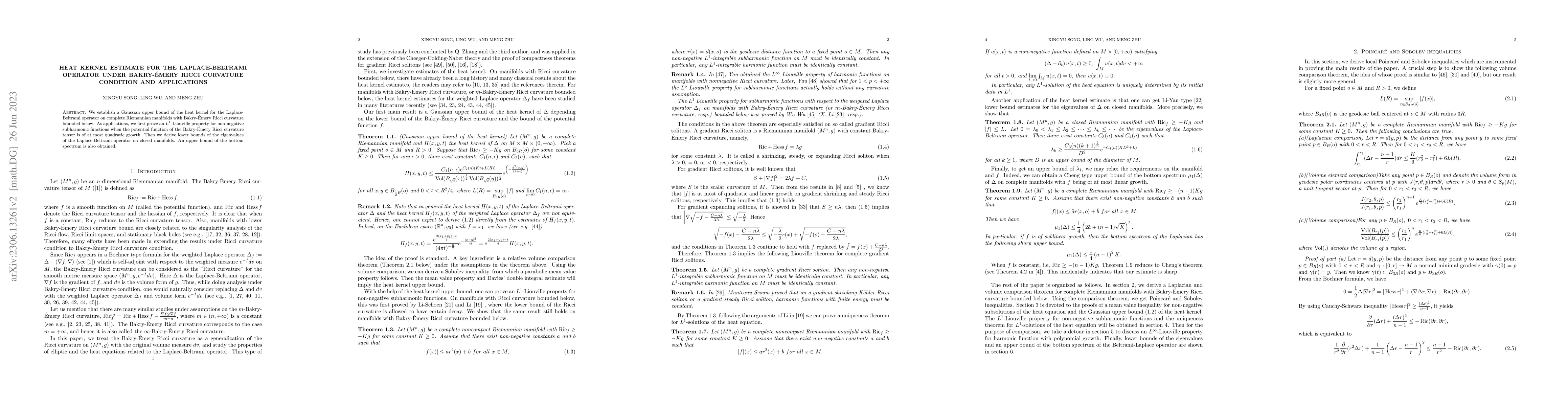 This paper establishes a Gaussian upper bound for the heat kernel on complete Riemannian manifolds with Bakry-Émery Ricci curvature bounded below. It also proves an L¹-Liouville property and derives lower bounds for the eigenvalues of the Laplace-Beltrami operator on closed manifolds.