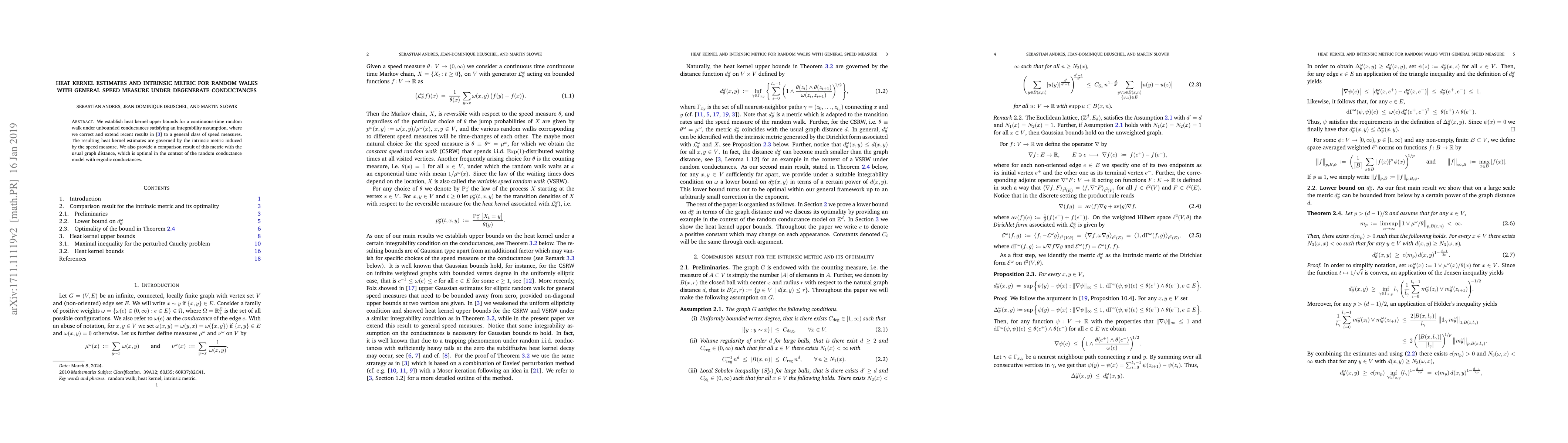 Summary: This paper establishes heat kernel upper bounds for random walks with general speed measures under degenerate conductances, extending previous results and deriving estimates governed by the intrinsic metric induced by the speed measure. It also compares this metric with the usual graph distance, showing optimality in the context of the random conductance model.
