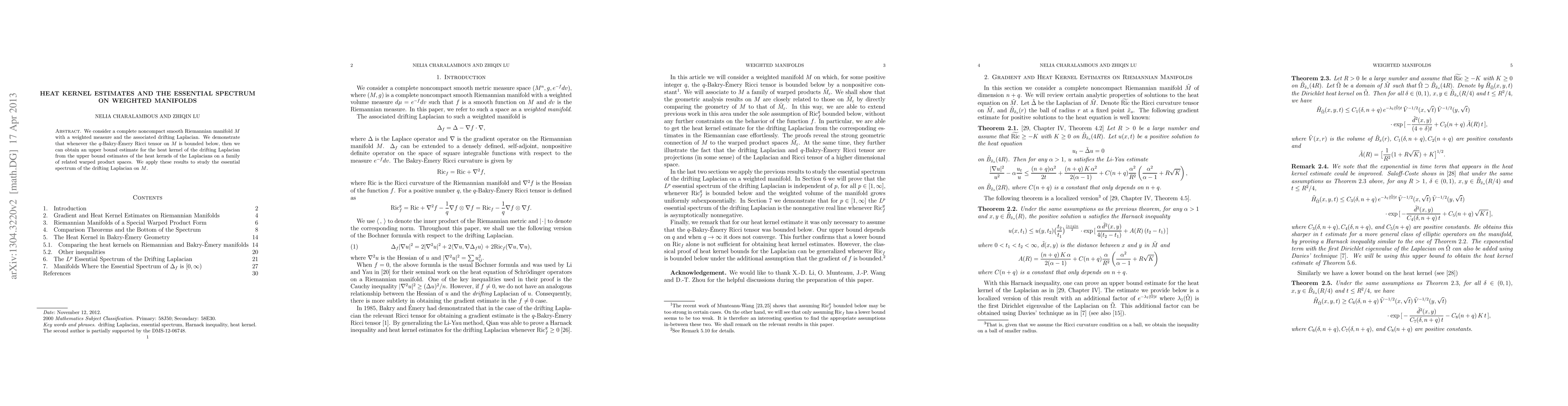We consider a complete noncompact smooth Riemannian manifold $M$ with a weighted measure and the associated drifting Laplacian. We demonstrate that whenever the $q$-Bakry-\'Emery Ricci tensor on $M$ is bounded below, then we can obtain an upper bound estimate for the heat kernel of the drifting Laplacian from the upper bound estimates of the heat kernels of the Laplacians on a family of related warped product spaces. We apply these results to study the essential spectrum of the drifting Laplacian on $M$.