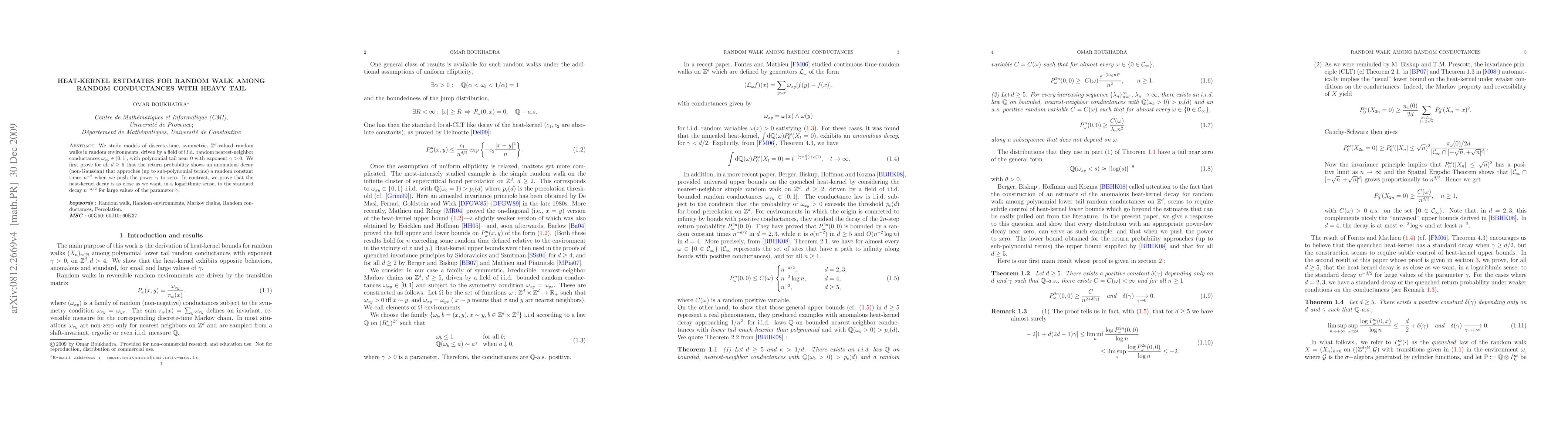 This paper investigates random walks on $\Z^{d}$ with heavy-tailed conductances, proving anomalous decay for return probabilities and standard heat-kernel decay for large conductance parameters, contrasting the behaviors of return and diffusion rates.