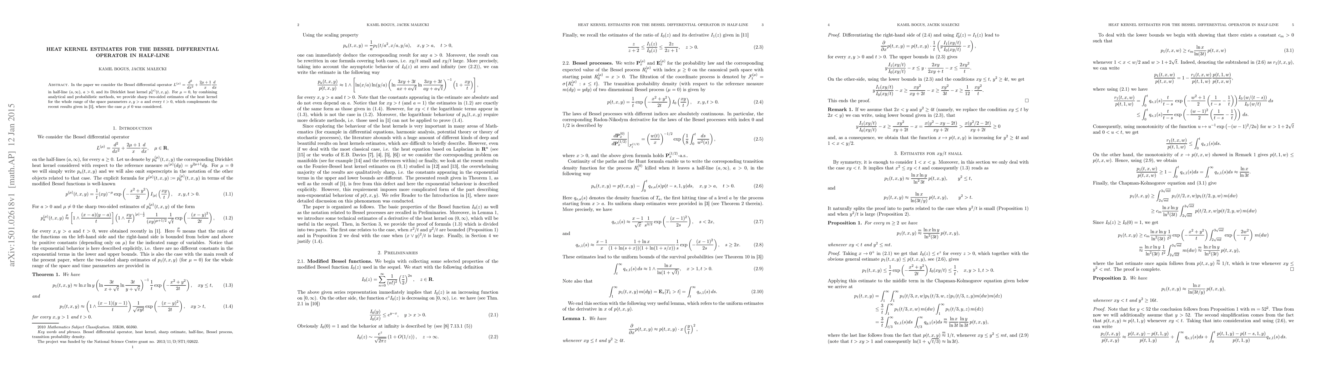 The paper provides sharp two-sided estimates for the heat kernel of the Bessel differential operator in the half-line, completing the analysis for the case when the parameter μ equals zero, complementing previous work on μ not equal to zero. Analytical and probabilistic methods are combined to achieve these estimates for all x, y > a and t > 0.