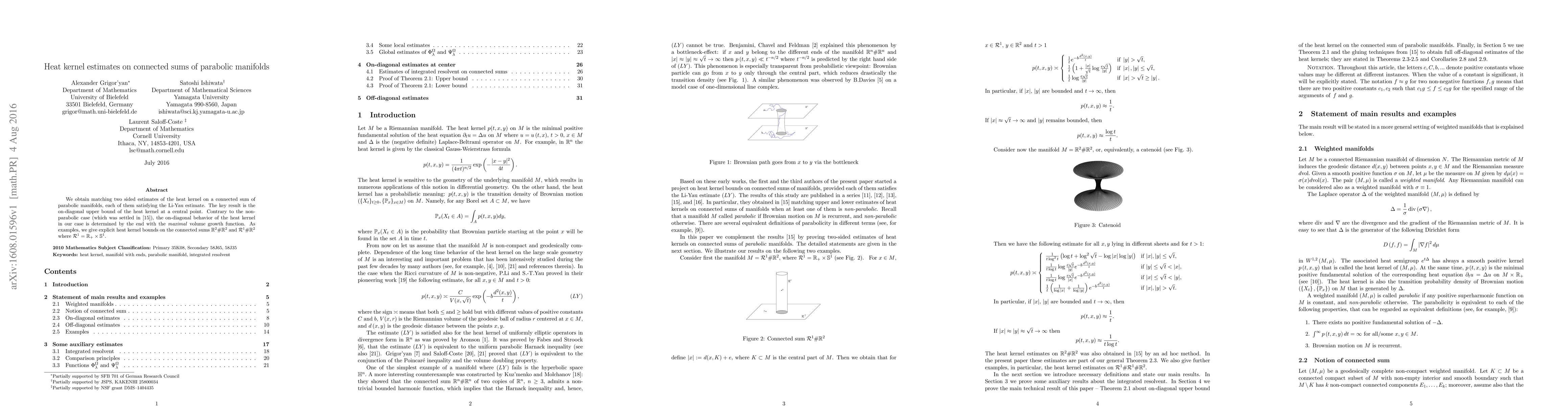 This paper provides two-sided heat kernel estimates for connected sums of parabolic manifolds, each satisfying the Li-Yau estimate. The key result is an on-diagonal upper bound determined by the end with maximal volume growth, contrasting with the nonparabolic case. Examples include explicit bounds on connected sums $R^2#R^2$ and $R^1#R^2$.