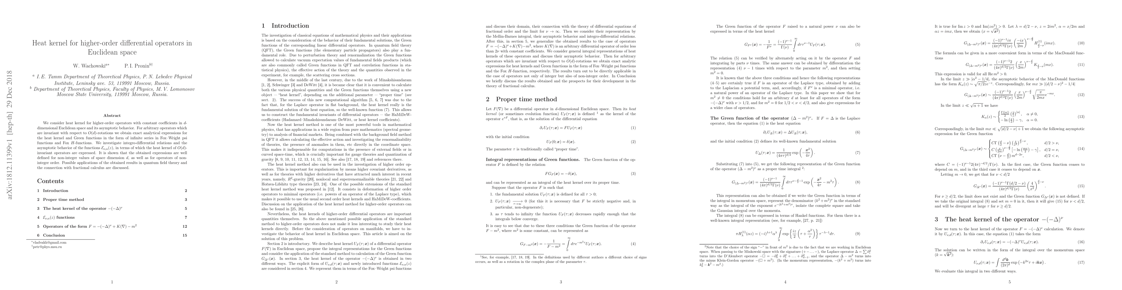 Researchers developed a heat kernel formula for higher-order differential operators in Euclidean space, obtaining exact analytical expressions that involve Fox functions and series expansions, with potential applications in quantum field theory and fractional calculus.