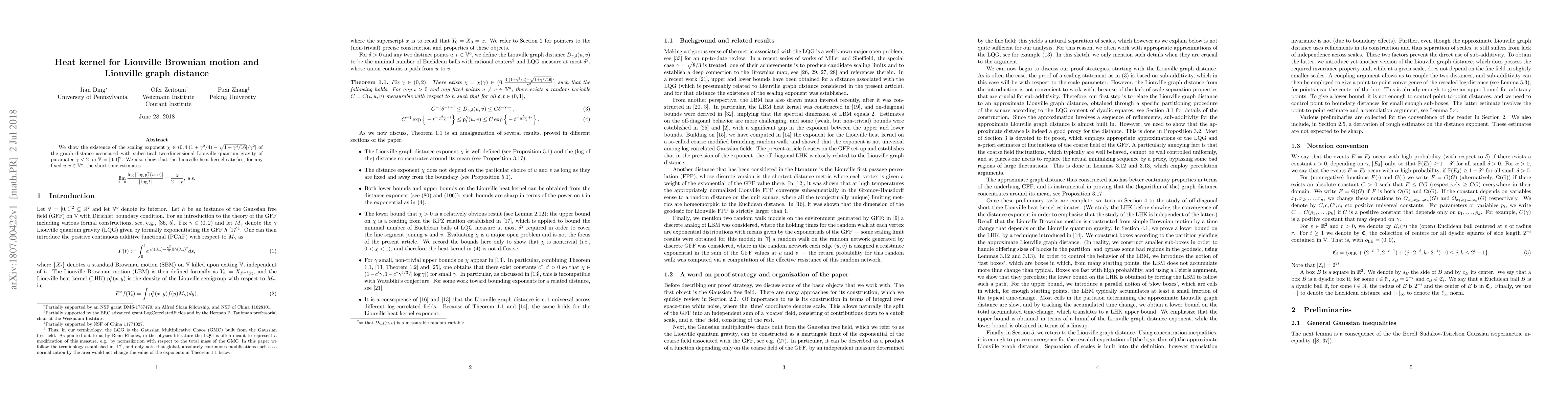 This paper demonstrates the existence of a scaling exponent for the graph distance in subcritical 2D Liouville quantum gravity and proves that the Liouville heat kernel satisfies specific short time estimates for points within the unit square. The scaling exponent $\chi$ is shown to lie within a certain interval dependent on the parameter $\gamma$, and the heat kernel's logarithmic behavior near zero is characterized.