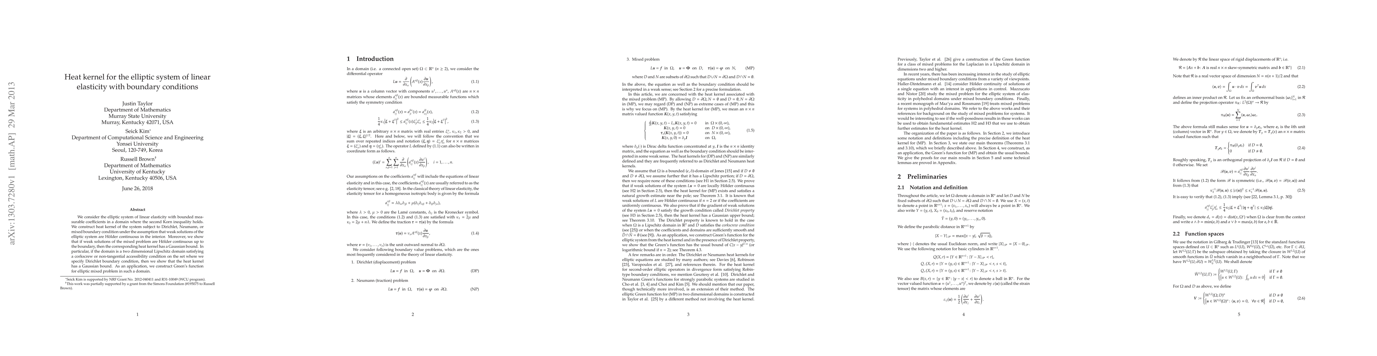 Researchers developed a heat kernel for linear elasticity with bounded coefficients under Dirichlet, Neumann, or mixed boundary conditions, showing that the corresponding heat kernel has a Gaussian bound in specific domains.