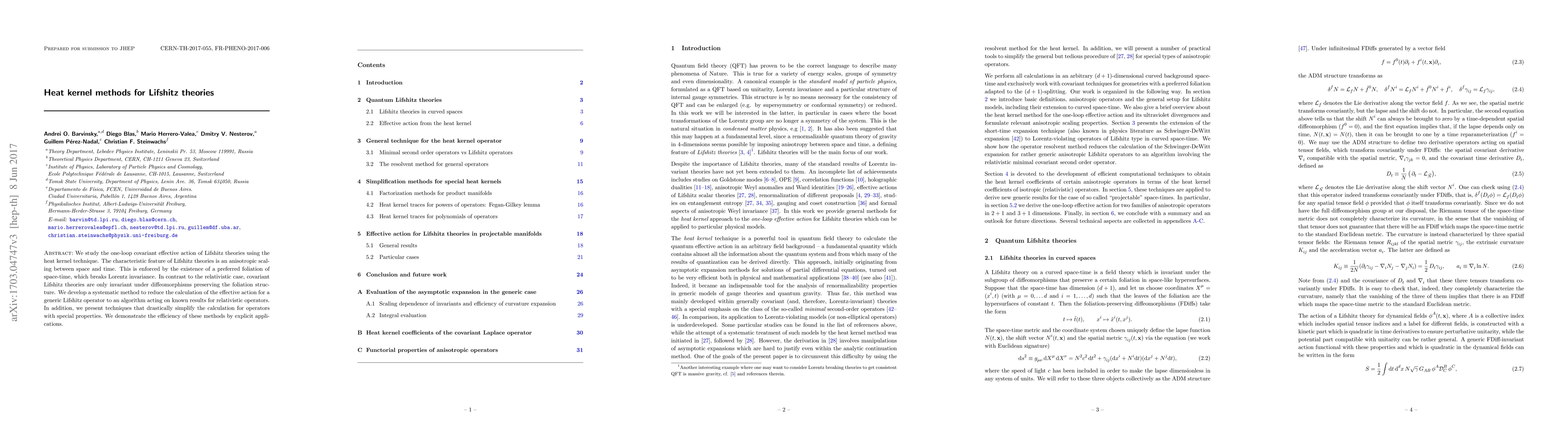 We study the one-loop covariant effective action of Lifshitz theories using the heat kernel technique. The characteristic feature of Lifshitz theories is an anisotropic scaling between space and time. This is enforced by the existence of a preferred foliation of space-time, which breaks Lorentz invariance. In contrast to the relativistic case, covariant Lifshitz theories are only invariant under diffeomorphisms preserving the foliation structure. We develop a systematic method to reduce the calculation of the effective action for a generic Lifshitz operator to an algorithm acting on known results for relativistic operators. In addition, we present techniques that drastically simplify the calculation for operators with special properties. We demonstrate the efficiency of these methods by explicit applications.