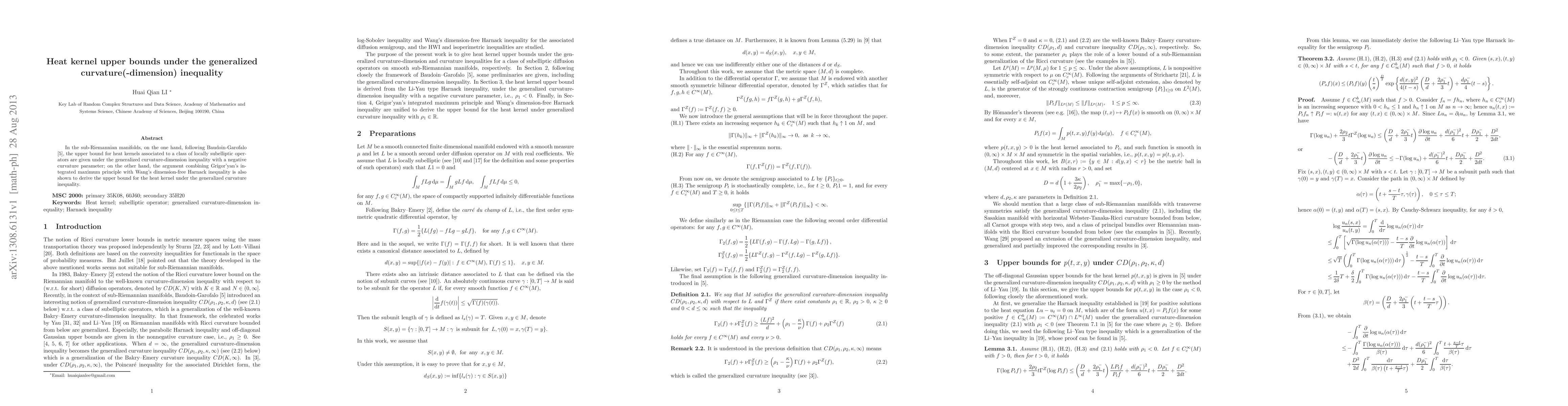 In the sub-Riemannian manifolds, on the one hand, following Baudoin-Garofalo \cite{BaudoinGarofalo}, the upper bound for heat kernels associated to a class of locally subelliptic operators are given under the generalized curvature-dimension inequality with a negative curvature parameter; on the other hand, the argument combining Grigor'yan's integrated maximum principle with Wang's dimension-free Harnack inequality is also shown to derive the upper bound for the heat kernel under the generalized curvature inequality.