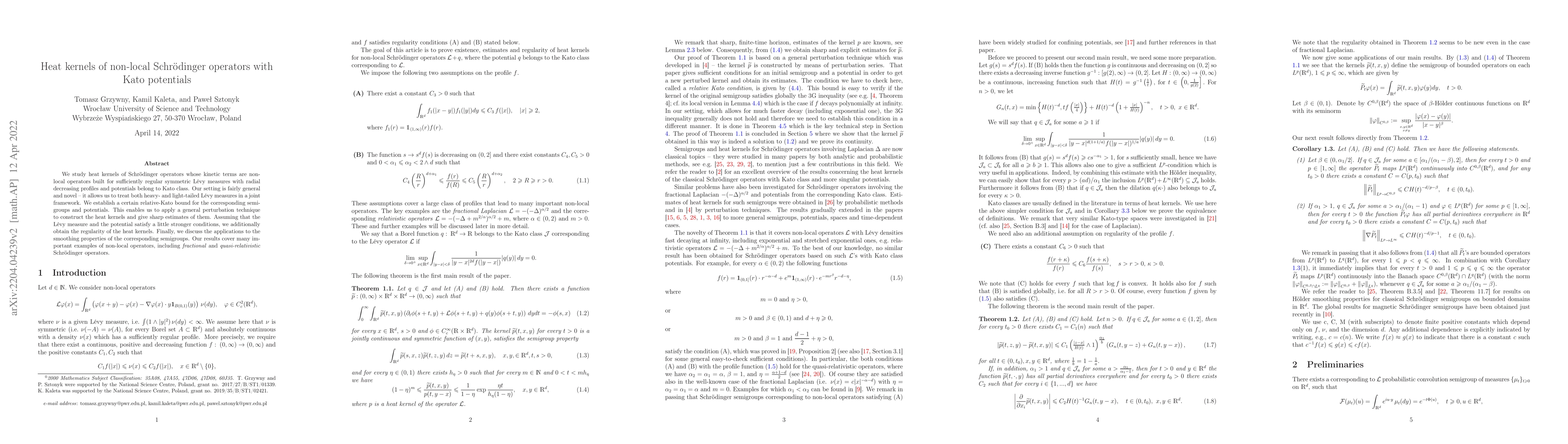 This paper investigates the heat kernels for non-local Schrödinger operators with Kato potentials, focusing on both heavy- and light-tailed Lévy measures within a unified framework. The authors establish relative-Kato bounds and construct sharp estimates for the heat kernels, providing additional regularity results under stronger conditions.