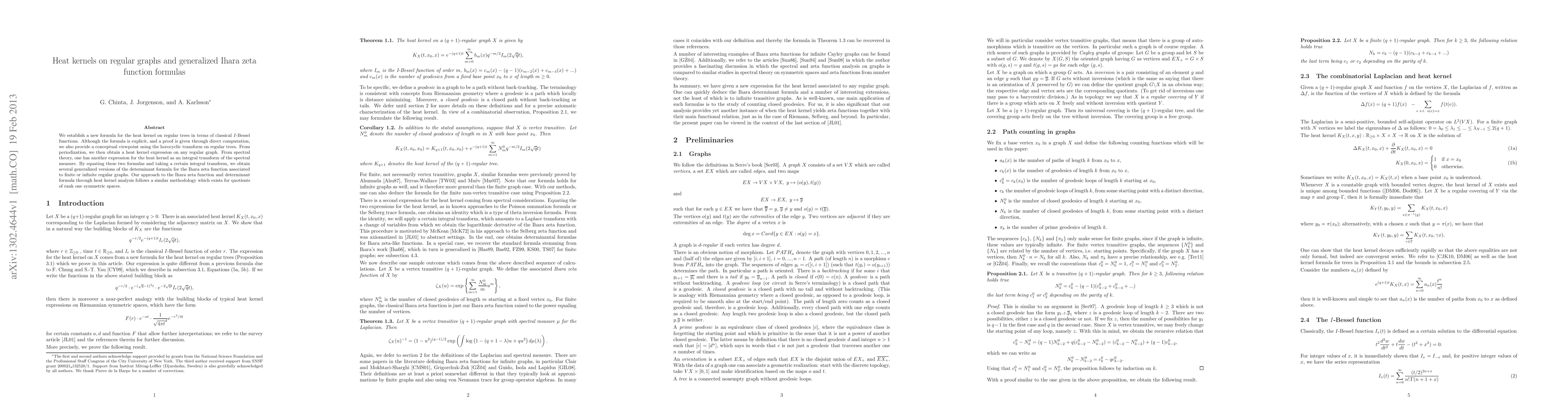 This paper presents a new explicit formula for the heat kernel on regular trees using classical I-Bessel functions, extending this to any regular graph via periodization. It also derives generalized Ihara zeta function determinant formulas through heat kernel analysis, employing methods analogous to those used for rank one symmetric spaces.