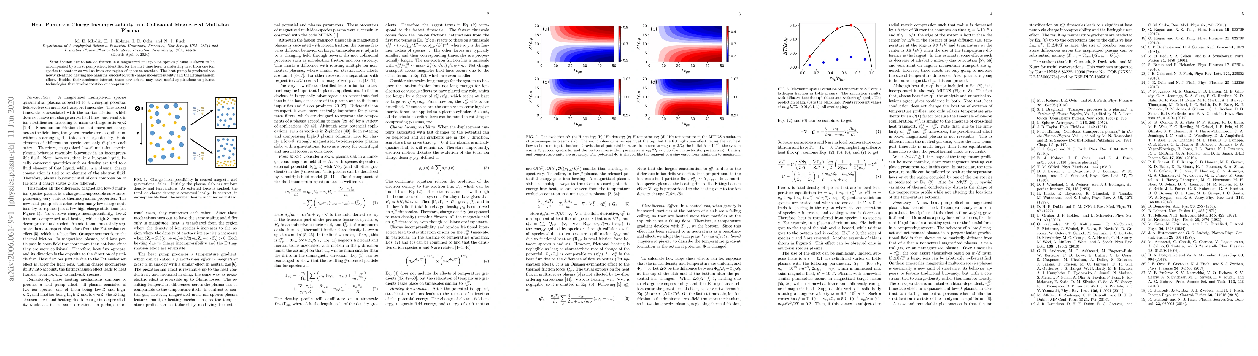 This research identifies a novel heat pump effect in collisional magnetized multi-ion plasmas, driven by ion-ion friction and charge incompressibility. The study reveals mechanisms like the Ettingshausen effect, potentially useful for advanced plasma technologies.