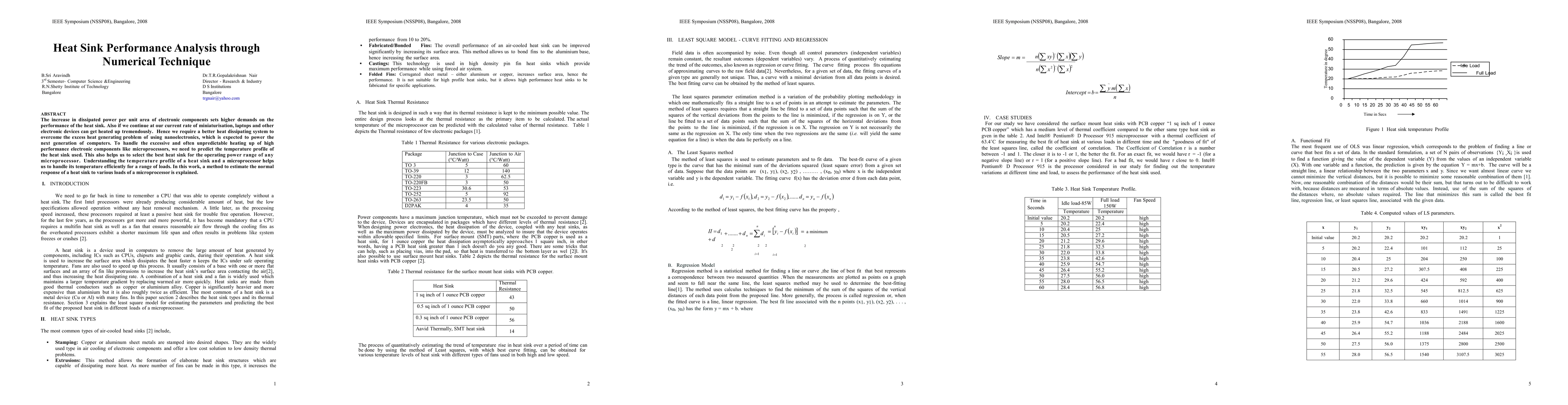 The increase in dissipated power per unit area of electronic components sets higher demands on the performance of the heat sink. Also if we continue at our current rate of miniaturisation, laptops and other electronic devices can get heated up tremendously. Hence we require a better heat dissipating system to overcome the excess heat generating problem of using nanoelectronics, which is expected to power the next generation of computers. To handle the excessive and often unpredictable heating up of high performance electronic components like microprocessors, we need to predict the temperature profile of the heat sink used. This also helps us to select the best heat sink for the operating power range of any microprocessor. Understanding the temperature profile of a heat sink and a microprocessor helps us to handle its temperature efficiently for a range of loads. In this work, a method to estimate the normal response of a heat sink to various loads of a microprocessor is explained.