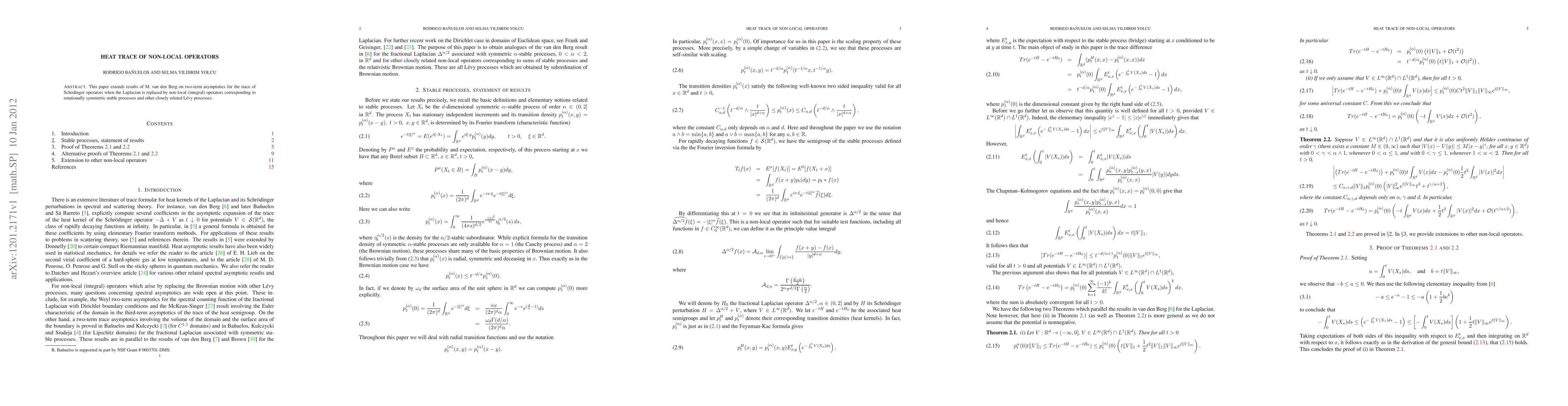 This paper extends results of M. van den Berg on two-term asymptotics for the trace of Sch\"odinger operators when the Laplacian is replaced by non-local (integral) operators corresponding to rotationally symmetric stable processes and other closely related L\'evy processes.