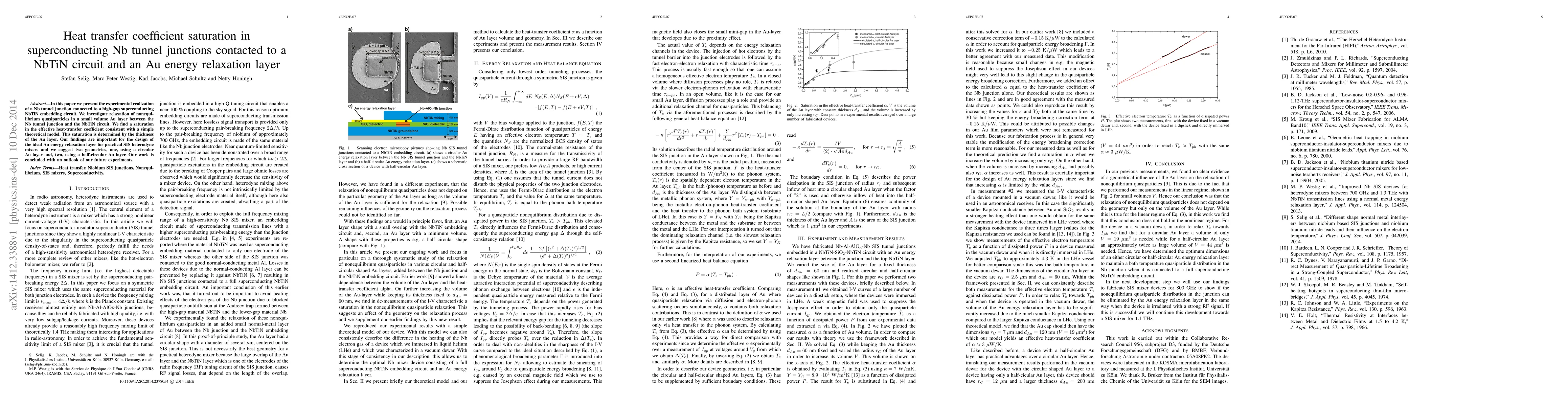 This paper investigates the heat transfer coefficient saturation in Nb tunnel junctions connected to NbTiN circuits via a Au relaxation layer, finding saturation dependent on Au layer thickness. The study proposes two Au layer geometries for optimal energy relaxation in SIS mixers and outlines future experimental directions.