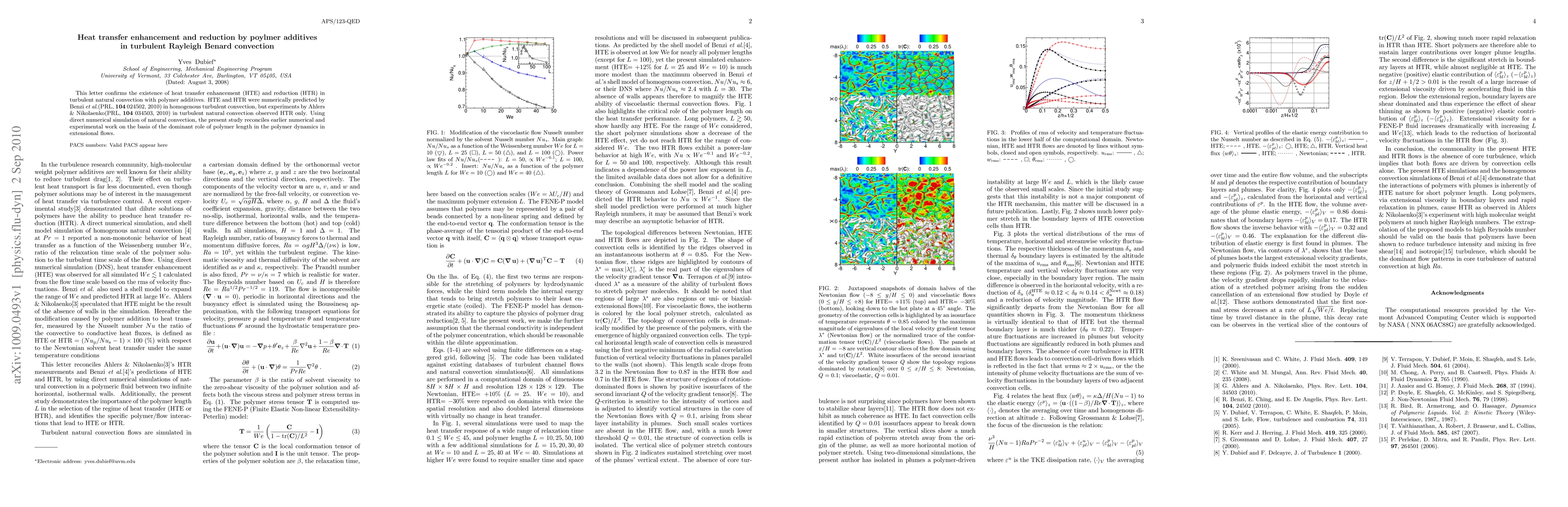 This study numerically demonstrates both heat transfer enhancement and reduction in turbulent Rayleigh-Bénard convection using polymer additives, resolving discrepancies between earlier numerical predictions and experimental observations. The findings emphasize the critical influence of polymer length on dynamics in extensional flows.