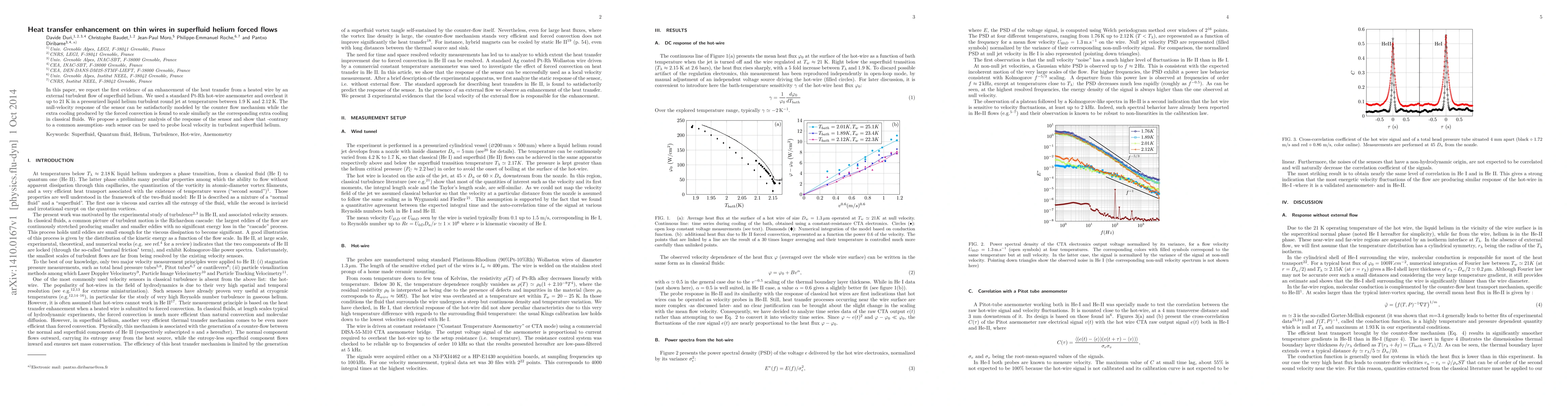 This research demonstrates enhanced heat transfer from a heated wire in superfluid helium due to external turbulent flow, modeled by a counter flow mechanism. The study shows that forced convection in superfluid helium can produce cooling effects similar to those in classical fluids, and proposes that Pt-Rh hot-wire anemometers can be used to probe local velocity in turbulent superfluid helium.