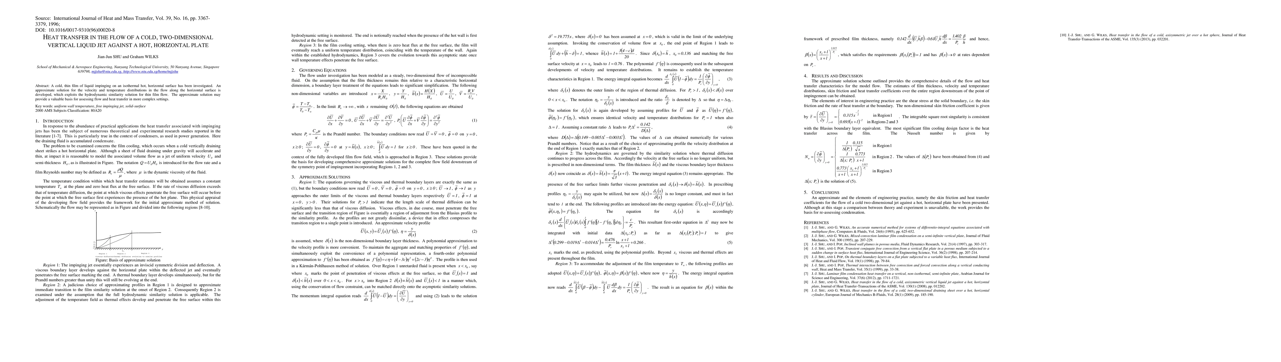 This study develops an approximate solution for the velocity and temperature distributions in the flow of a cold, two-dimensional vertical liquid jet impinging on a hot, horizontal plate, utilizing hydrodynamic similarity solutions for thin film flow. The findings offer a foundation for evaluating flow and heat transfer in more intricate scenarios.