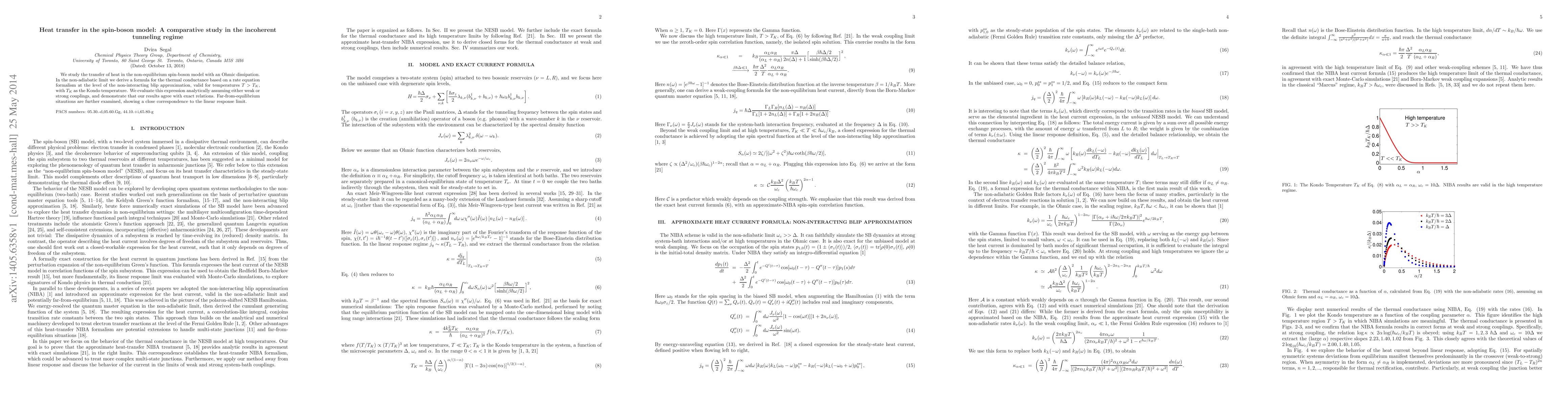 Researchers studied heat transfer in a non-equilibrium spin-boson model, developing a formula for thermal conductance that agrees with exact relations for both weak and strong couplings. The results provide insights into far-from-equilibrium situations and the linear response limit.