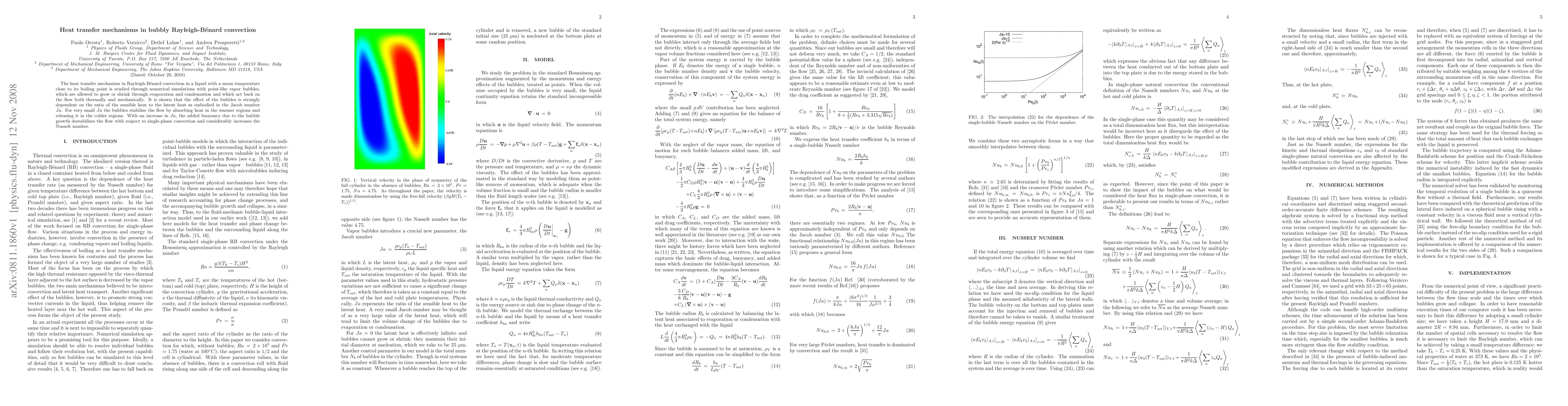 This paper investigates heat transfer in bubbly Rayleigh-Benard convection using numerical simulations, revealing that vapor bubbles significantly influence heat transfer depending on the Jacob number Ja. Low Ja values stabilize flow by redistributing heat, while higher Ja values destabilize the flow and enhance heat transfer.
