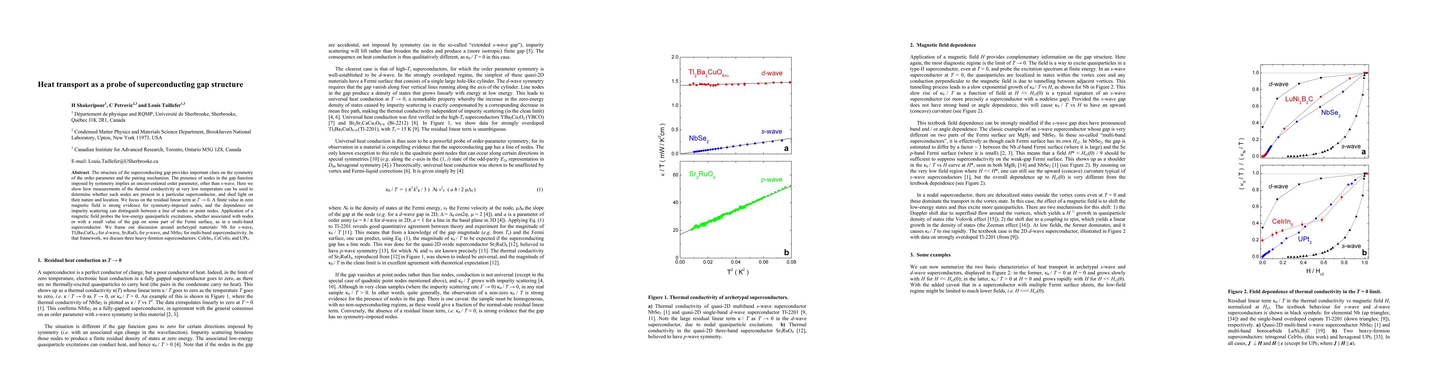 The structure of the superconducting gap provides important clues on the symmetry of the order parameter and the pairing mechanism. The presence of nodes in the gap function imposed by symmetry implies an unconventional order parameter, other than s-wave. Here we show how measurements of the thermal conductivity at very low temperature can be used to determine whether such nodes are present in a particular superconductor, and shed light on their nature and location. We focus on the residual linear term at T goes to 0. A finite value in zero magnetic field is strong evidence for symmetry-imposed nodes, and the dependence on impurity scattering can distinguish between a line of nodes or point nodes. Application of a magnetic field probes the low-energy quasiparticle excitations, whether associated with nodes or with a small value of the gap on some part of the Fermi surface, as in a multi-band superconductor. We frame our discussion around archetypal materials: Nb for s-wave, Tl2Ba2CuO(6+\delta) for d-wave, Sr2RuO4 for p-wave, and NbSe2 for multi-band superconductivity. In that framework, we discuss three heavy-fermion superconductors: CeIrIn5, CeCoIn5 and UPt3.