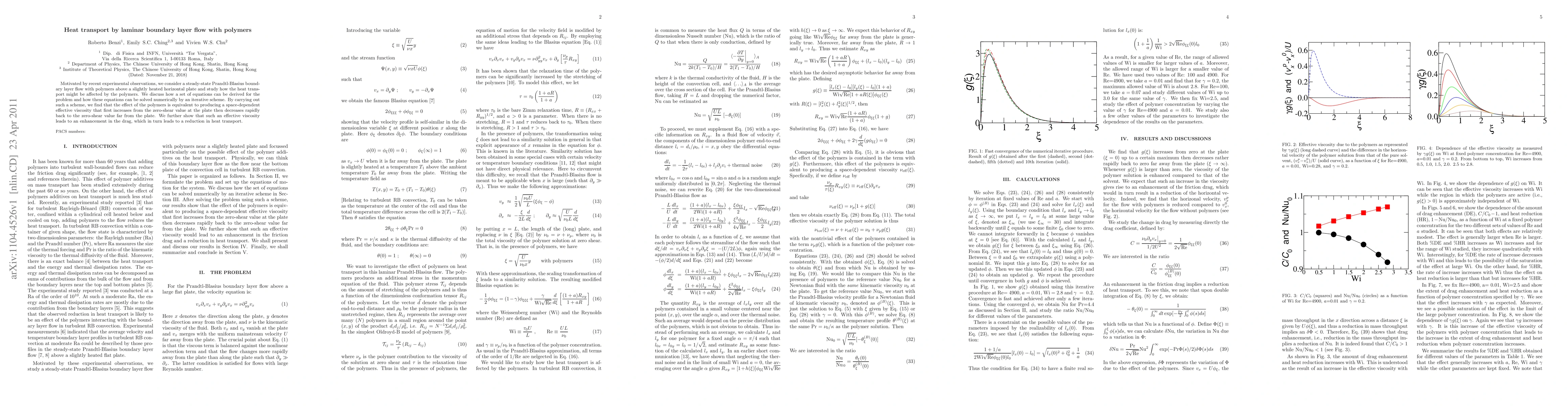This paper investigates the impact of polymers on heat transport in a laminar boundary layer flow above a heated horizontal plate, finding that polymers create a space-dependent effective viscosity that enhances drag and reduces heat transport. Numerical solutions reveal that the effective viscosity increases near the plate and decreases further away.