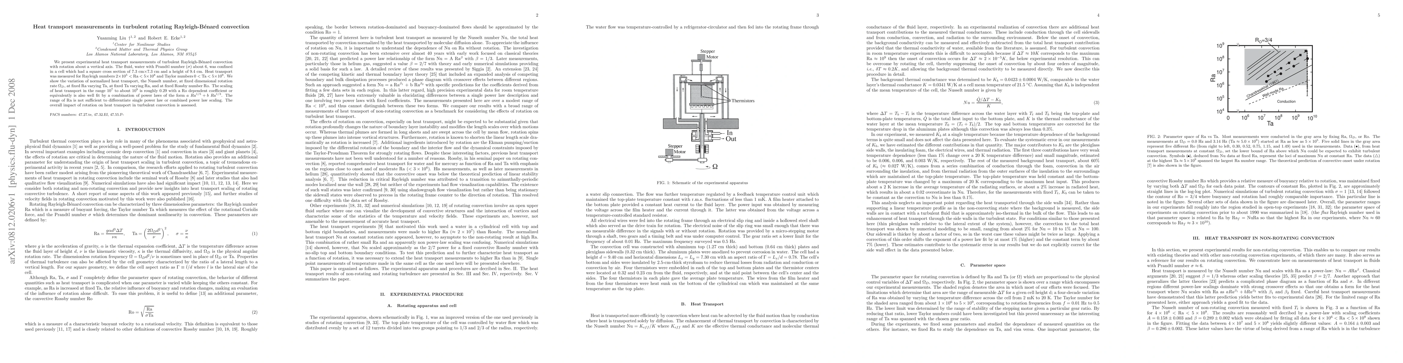 This paper reports experimental measurements of heat transport in turbulent rotating Rayleigh-Bénard convection using water. The study finds that the normalized heat transport scales with a coefficient dependent on the Rossby number, fitting a combination of $a Ra^{1/5} + b Ra^{1/3}$ power laws.