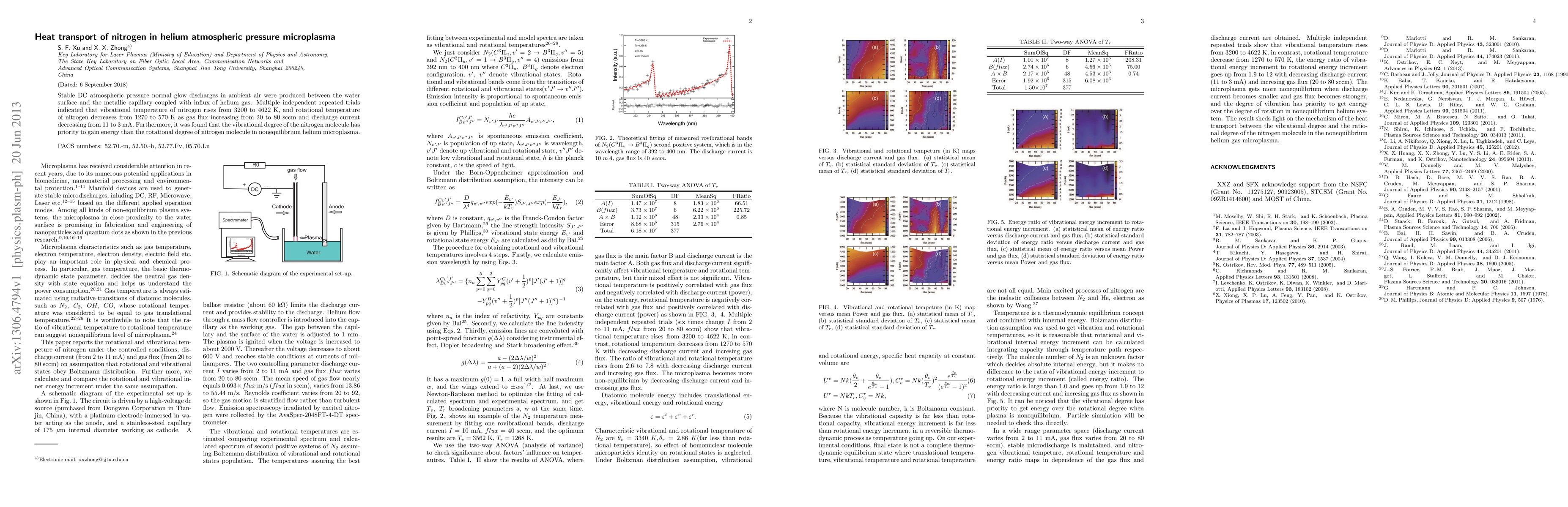 The paper presents a detailed analysis of nitrogen vibrational and rotational temperatures in helium microplasmas under controlled discharge conditions, providing insights into energy distribution mechanisms.