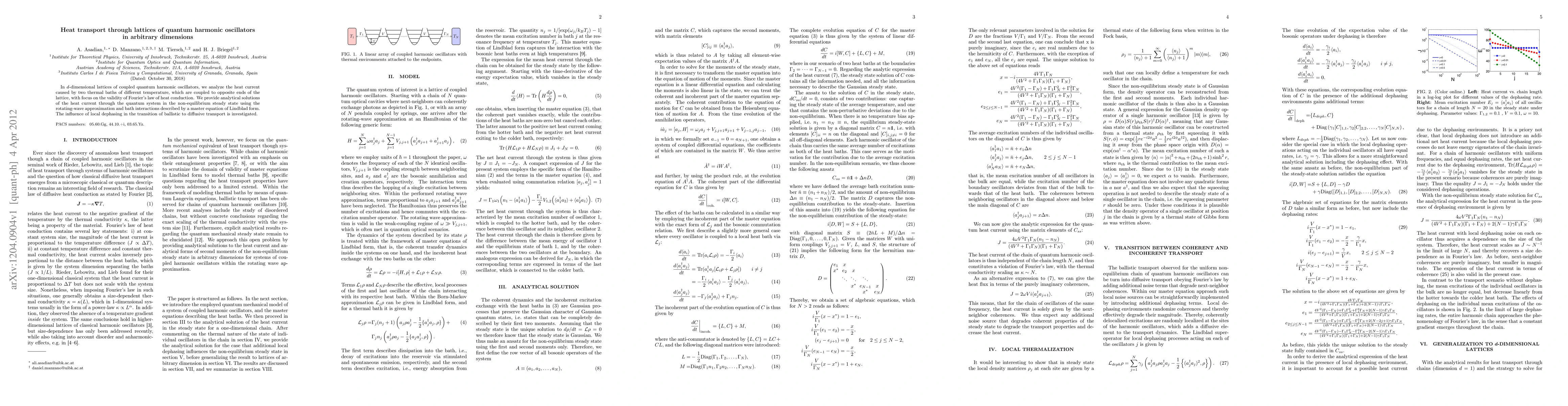 In d-dimensional lattices of coupled quantum harmonic oscillators, we analyze the heat current caused by two thermal baths of different temperature, which are coupled to opposite ends of the lattice, with focus on the validity of Fourier's law of heat conduction. We provide analytical solutions of the heat current through the quantum system in the non-equilibrium steady state using the rotating-wave approximation and bath interactions described by a master equation of Lindblad form. The influence of local dephasing in the transition of ballistic to diffusive transport is investigated.