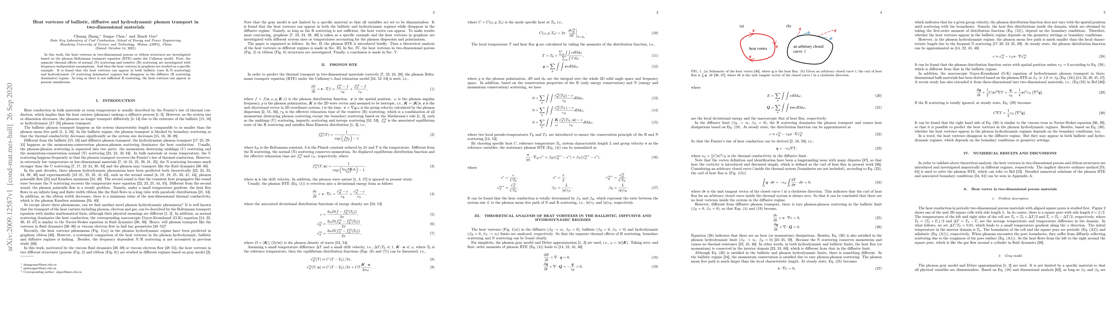 This research investigates heat vortexes in two-dimensional porous or ribbon structures using the phonon Boltzmann transport equation, finding that they occur in both ballistic and hydrodynamic regimes but vanish in the diffusive regime, provided there is insufficient resistive scattering. The study focuses on graphene as an example.