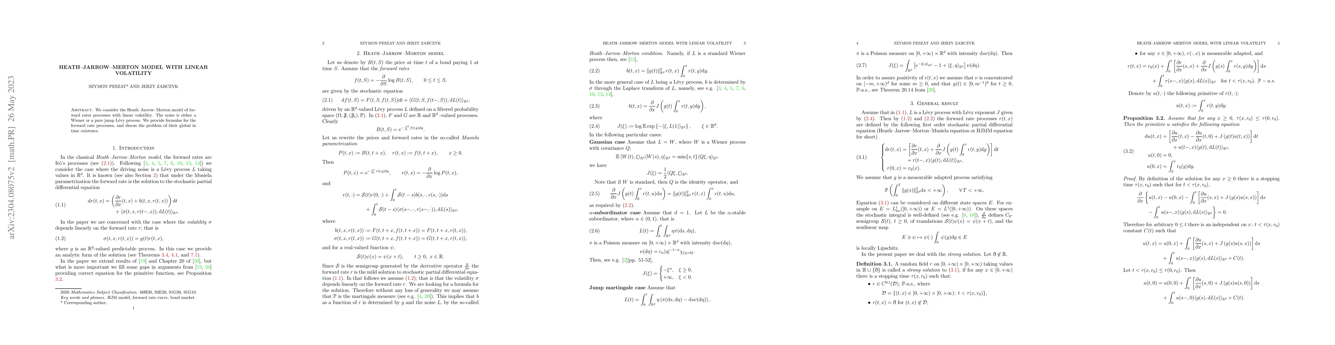 This paper explores the Heath-Jarrow-Merton model with linear volatility, considering both Wiener and pure jump Lévy processes. It derives formulae for forward rate processes and examines the issue of their global existence over time.