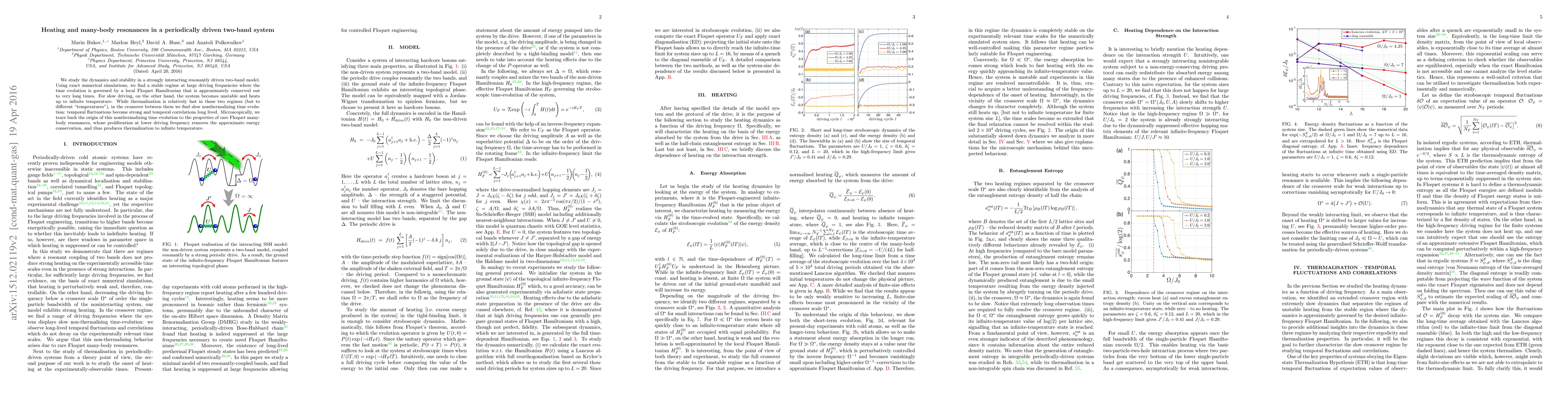 We study the dynamics and stability in a strongly interacting resonantly driven two-band model. Using exact numerical simulations, we find a stable regime at large driving frequencies where the time evolution is governed by a local Floquet Hamiltonian that is approximately conserved out to very long times. For slow driving, on the other hand, the system becomes unstable and heats up to infinite temperature. While thermalization is relatively fast in these two regimes (but to different "temperatures"), in the crossover between them we find slow nonthermalizing time evolution: temporal fluctuations become strong and temporal correlations long lived. Microscopically, we trace back the origin of this nonthermalizing time evolution to the properties of rare Floquet many-body resonances, whose proliferation at lower driving frequency removes the approximate energy conservation, and thus produces thermalization to infinite temperature.
