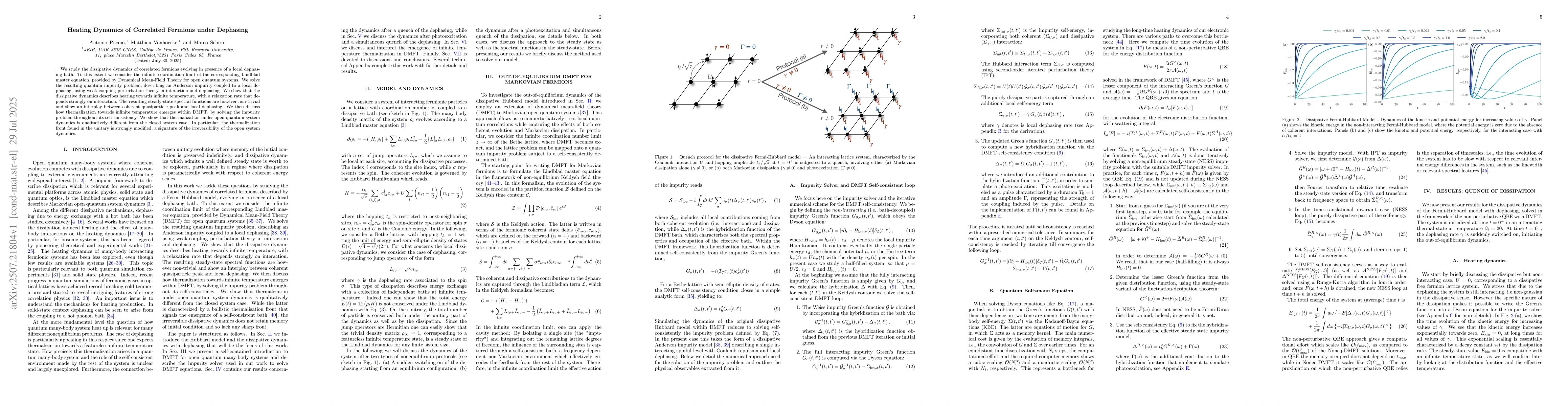 The paper presents a detailed analysis of the heating dynamics of correlated fermions under dephasing using DMFT and perturbation theory, revealing novel aspects of thermalization in open quantum many-body systems.
