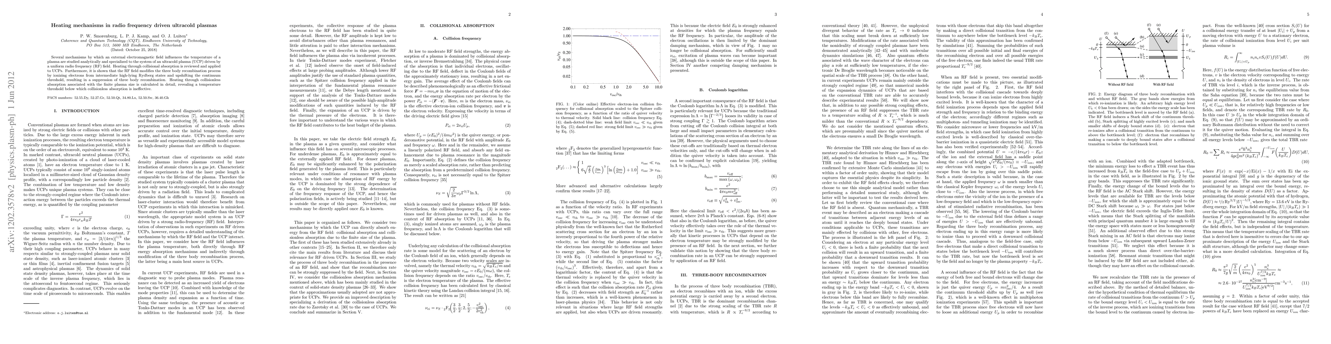 Researchers studied how a radio frequency field affects ultracold plasmas, finding that it suppresses three-body recombination and enables heating through collisionless absorption at low temperatures.