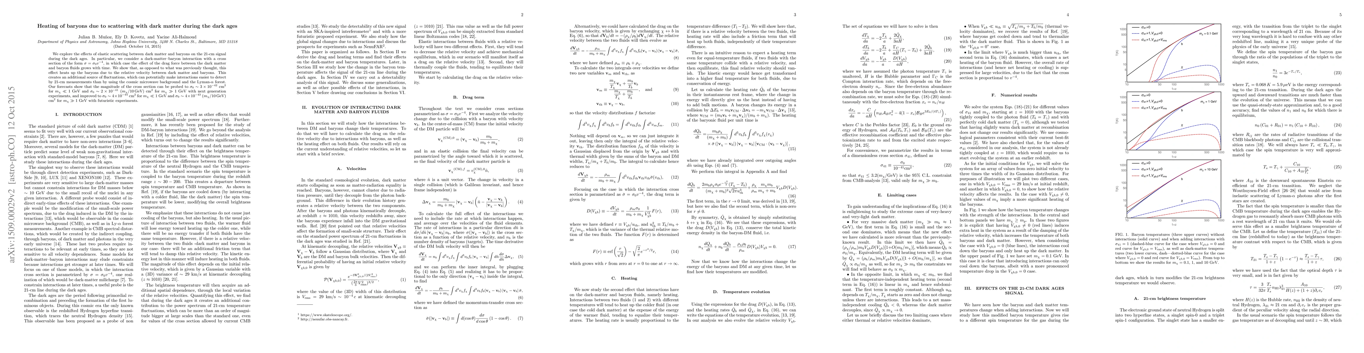 This study investigates the heating of baryons via dark matter scattering during the dark ages, revealing that such interactions generate additional fluctuations in the 21-cm signal. Future experiments can probe the cross section down to $\sigma_0\sim 3\times 10^{-42}$ cm$^2$ for light dark matter, potentially improving to $\sigma_0\sim 4\times 10^{-44}$ cm$^2$.