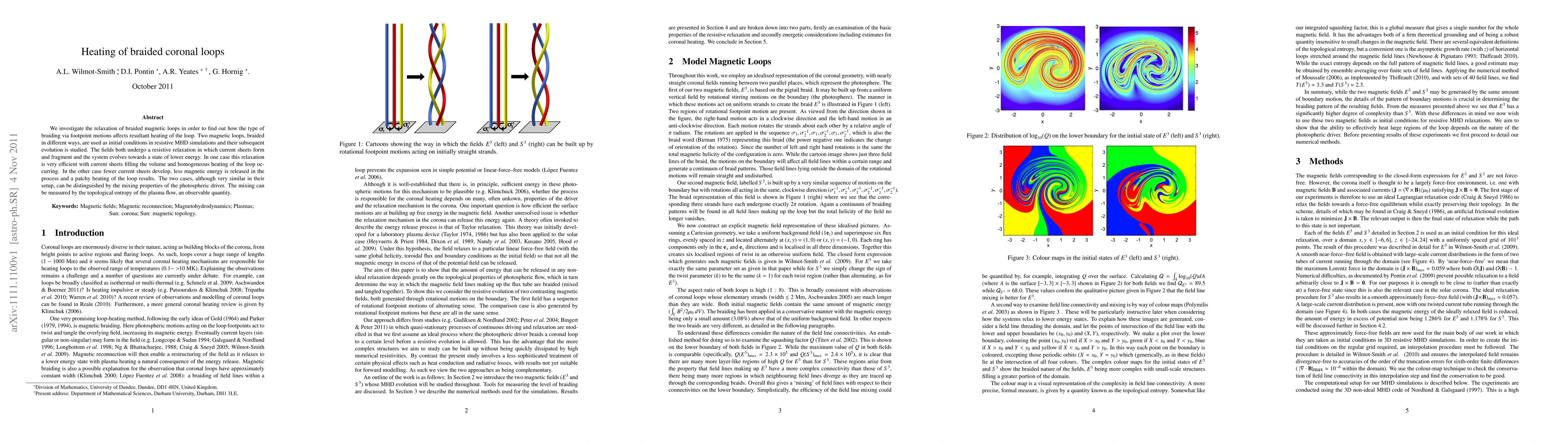 We investigate the relaxation of braided magnetic loops in order to find out how the type of braiding via footpoint motions affects resultant heating of the loop. Two magnetic loops, braided in different ways, are used as initial conditions in resistive MHD simulations and their subsequent evolution is studied. The fields both undergo a resistive relaxation in which current sheets form and fragment and the system evolves towards a state of lower energy. In one case this relaxation is very efficient with current sheets filling the volume and homogeneous heating of the loop occurring. In the other case fewer current sheets develop, less magnetic energy is released in the process and a patchy heating of the loop results. The two cases, although very similar in their setup, can be distinguished by the mixing properties of the photospheric driver. The mixing can be measured by the topological entropy of the plasma flow, an observable quantity.