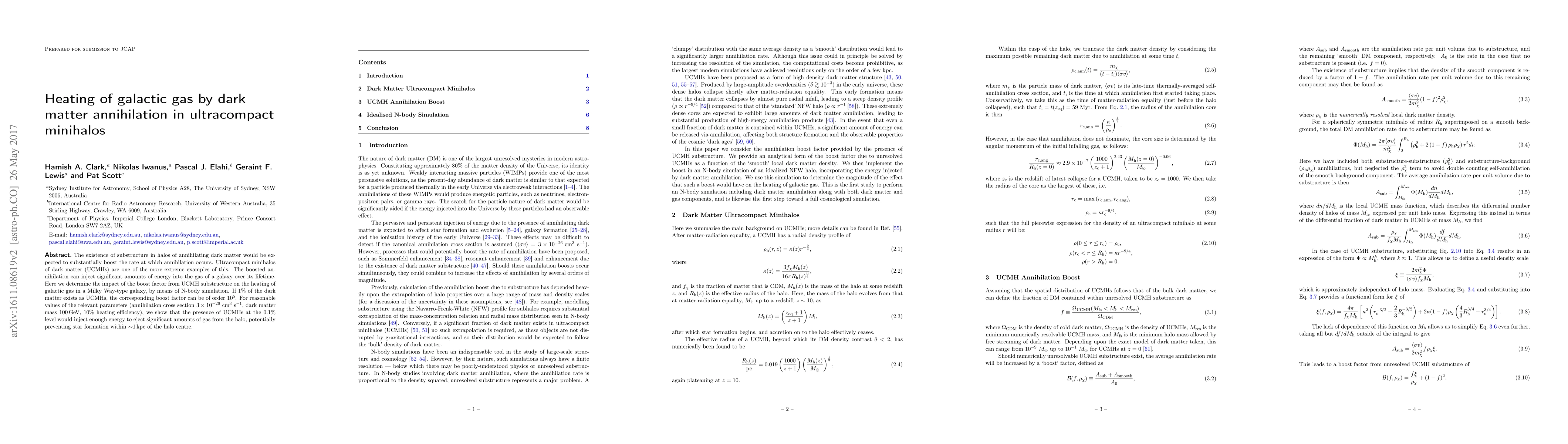 This paper investigates how ultracompact minihalos (UCMHs) of dark matter can significantly enhance the annihilation rate, thereby heating galactic gas. Simulations show that if 0.1% of dark matter exists as UCMHs, it could inject enough energy to eject gas and inhibit star formation within 1 kpc of the halo center.